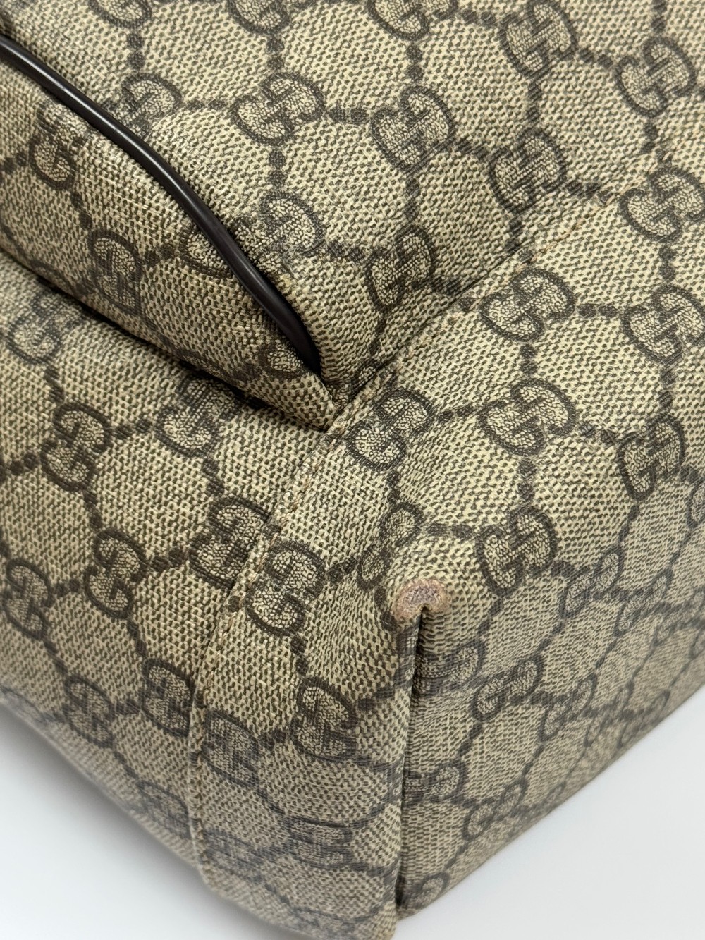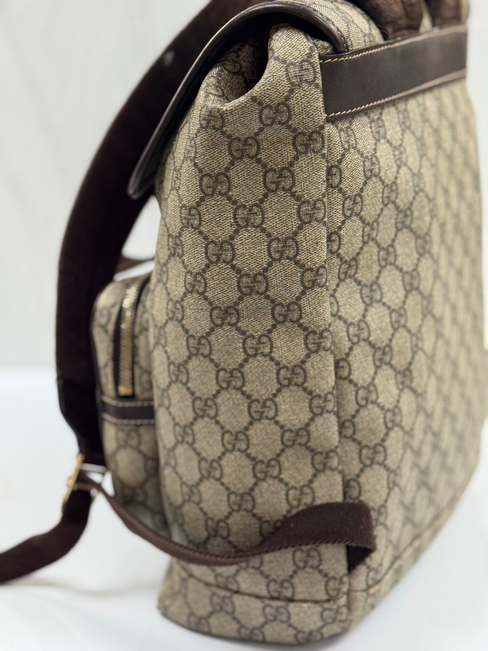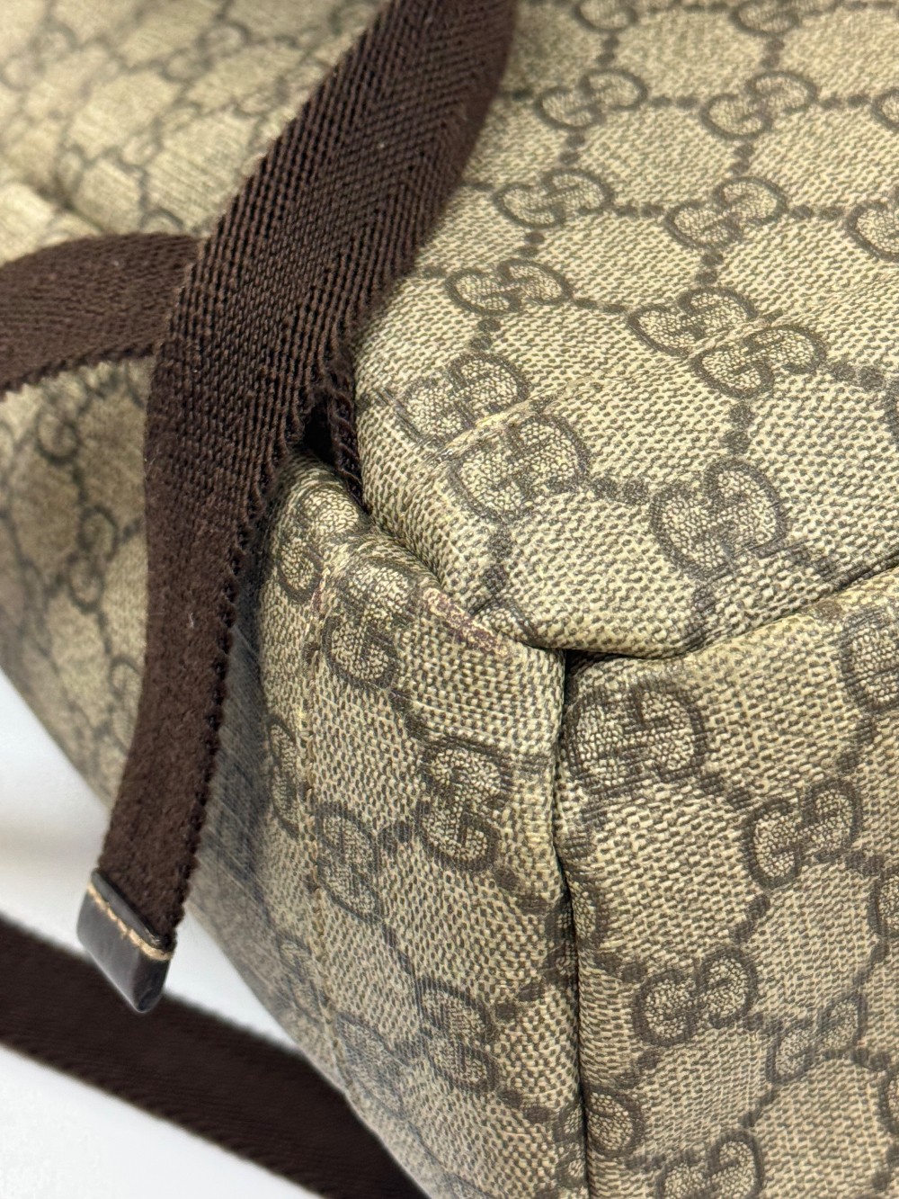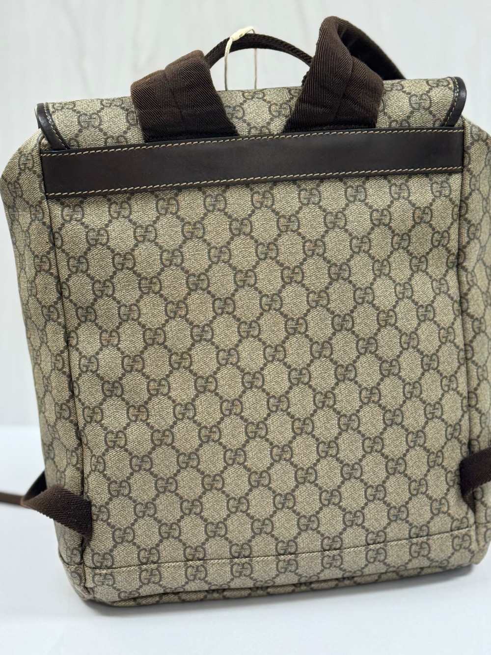 This is an authentic GUCCI GG Supreme Monogram Medium Backpack in Brown. This is a chic backpack that is as practical as it is stylish. It is constructed of classic monogram GG canvas that is reinforced with leather piping. The bag has a crossover top drawstring flap, an external zipper pocket and has nylon adjustable shoulder straps and a convenient grip. The interior is a spacious chocolate brown textile with a zipper pocket. This is superb backpack, ideal for everyday essentials, from Gucci!