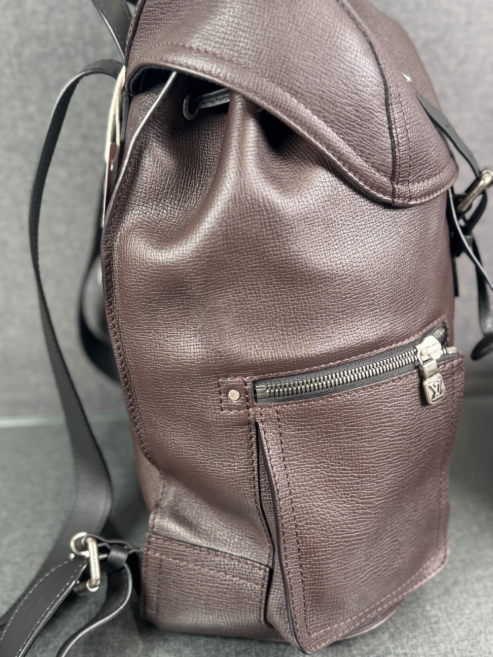 The Louis Vuitton Utah Canyon Backpack is crafted from high-quality Utah leather in a rich marron color, complemented by silver hardware. With dimensions of 46cm x 29.5cm x 17.5cm, this backpack offers ample space for daily essentials.