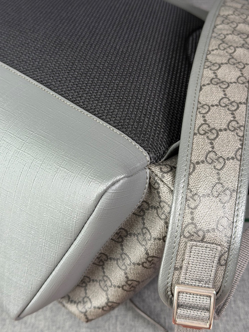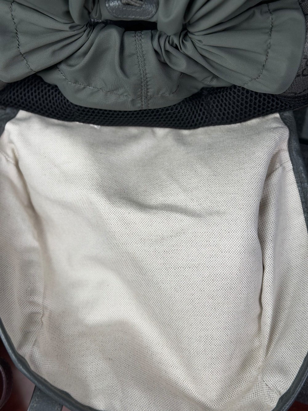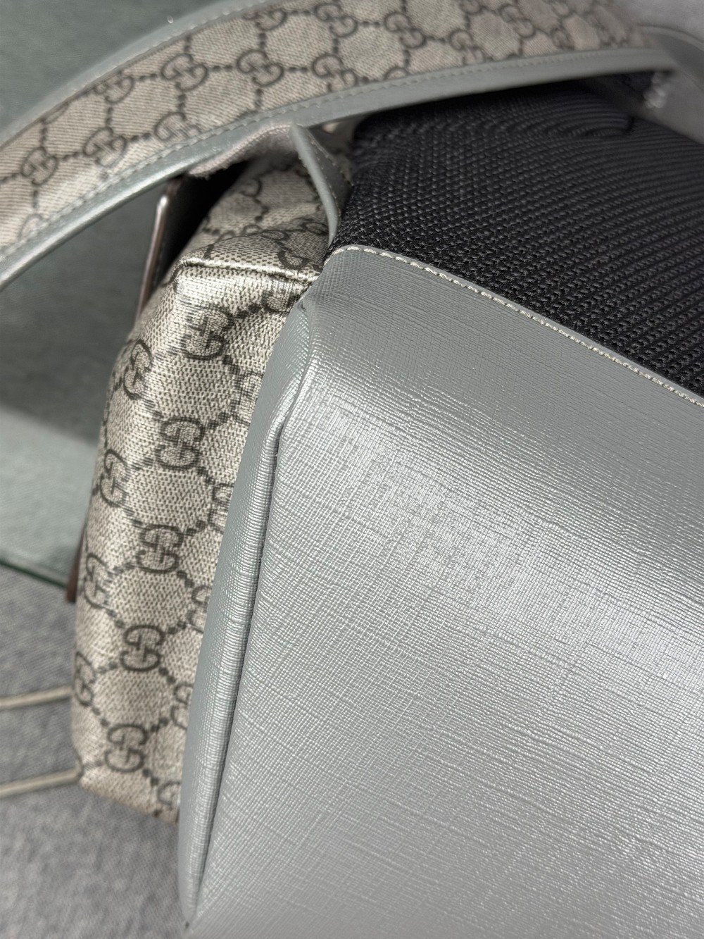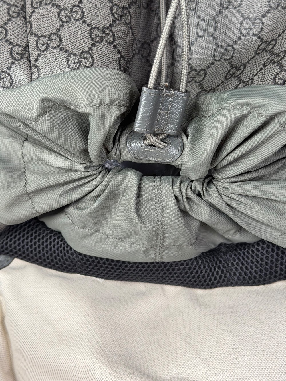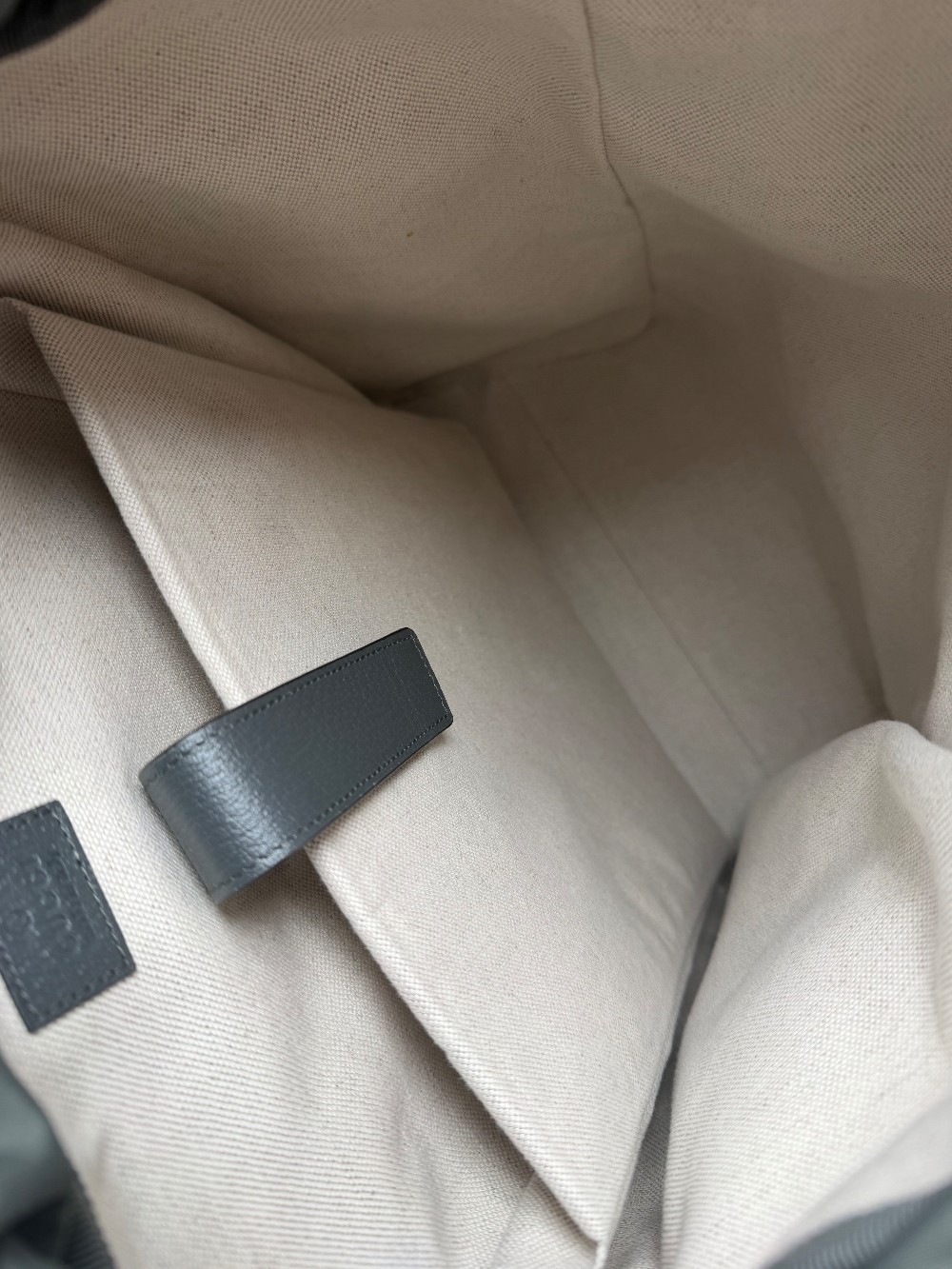 Crafted from a coated microfiber fabric, here it appears in an all Grey variation to define this backpack. A tonal leather trim completes the style