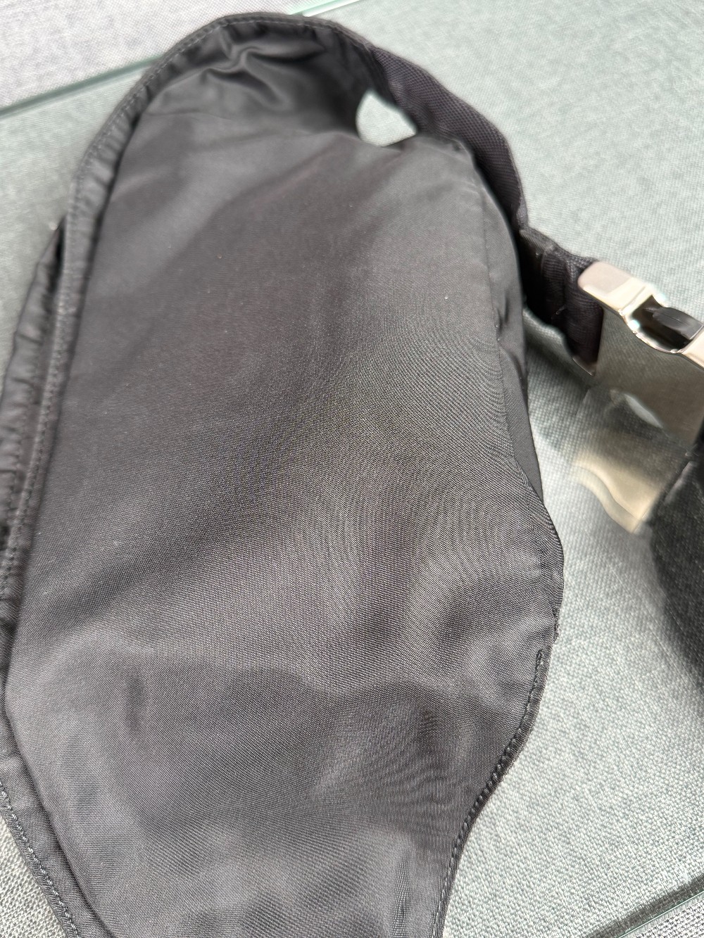 This is an authentic PRADA Tessuto Nylon Double Pocket Belt Bag in Black. This chic belt bag is crafted of technical nylon fabric in black. The bag features a long zipper pocket, a front pocket, and nylon strap with polished silver hardware. The top zipper opens to a black fabric interior with a zipper pocket.