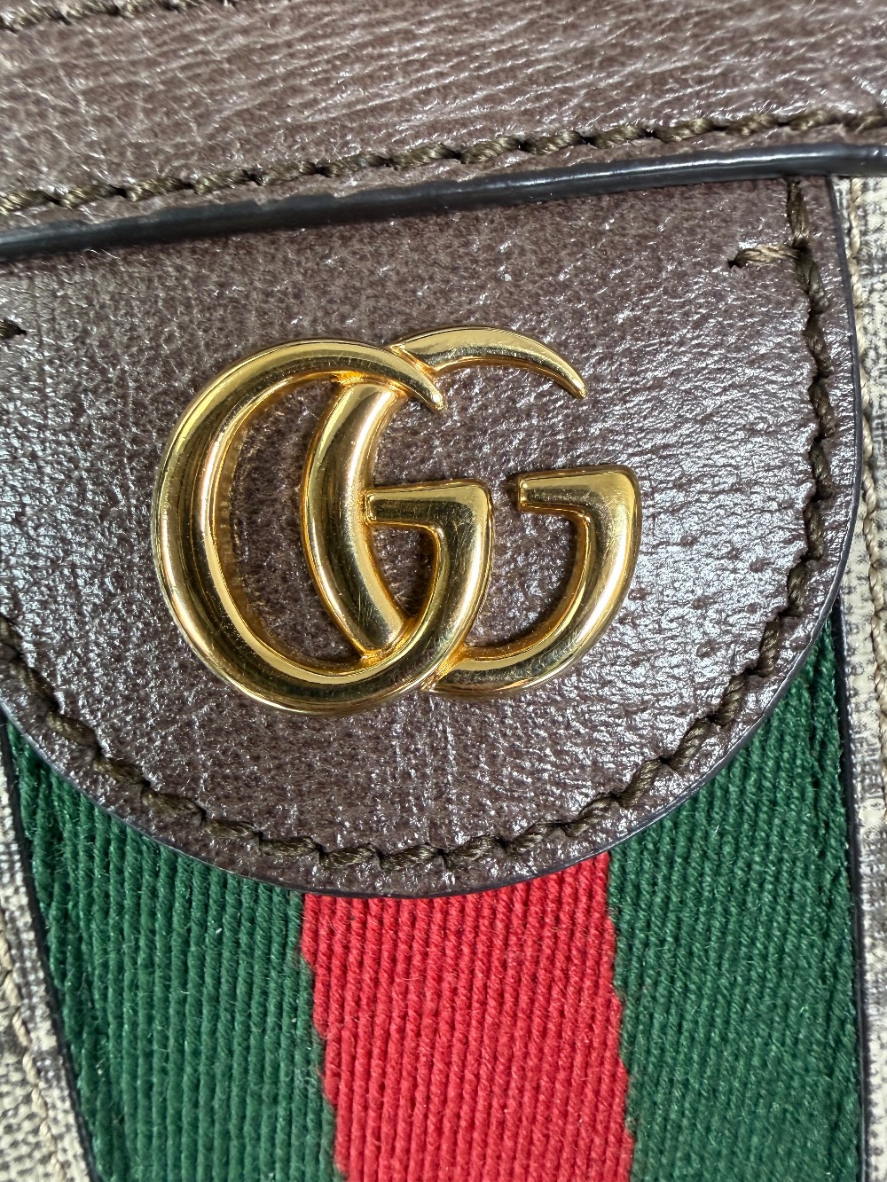 The bag features the signature green and red Web stripe down the center, gold-toned hardware, and a prominent Double G logo emblem.