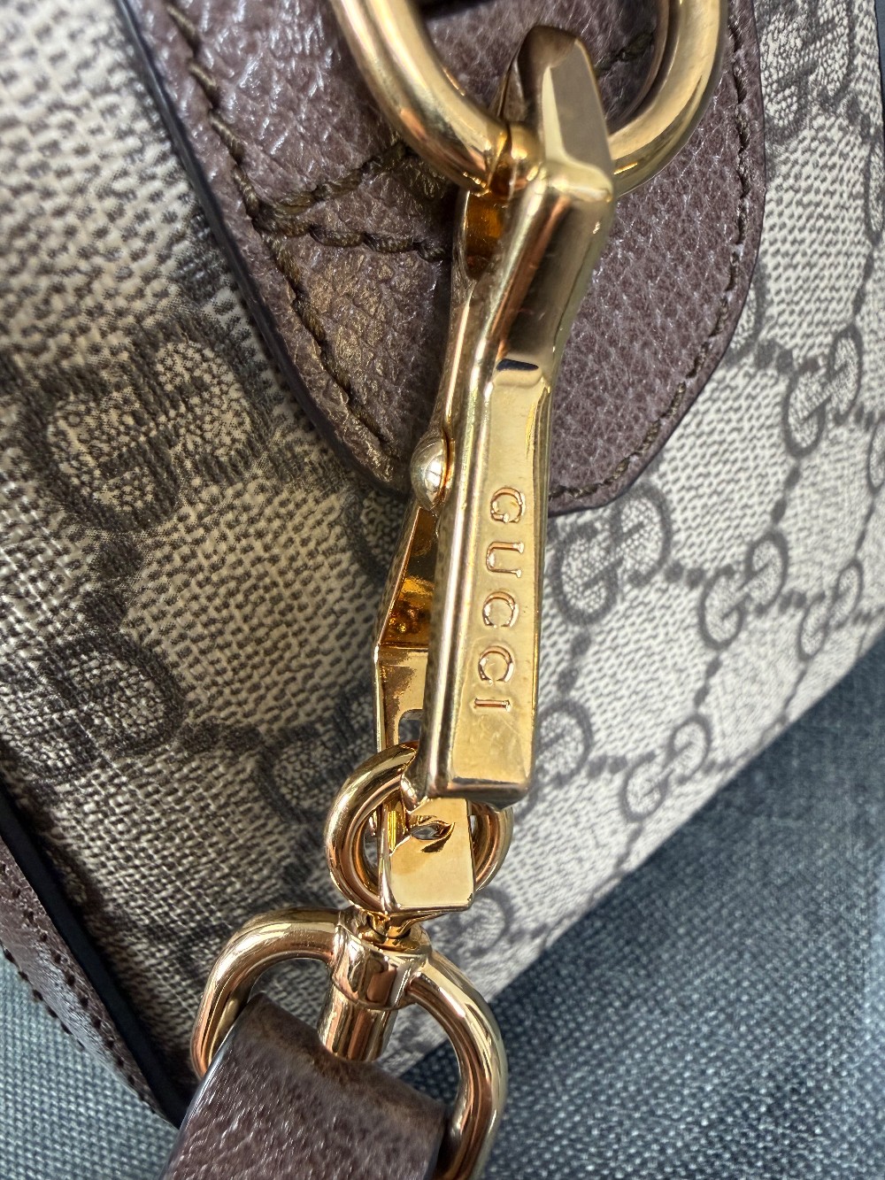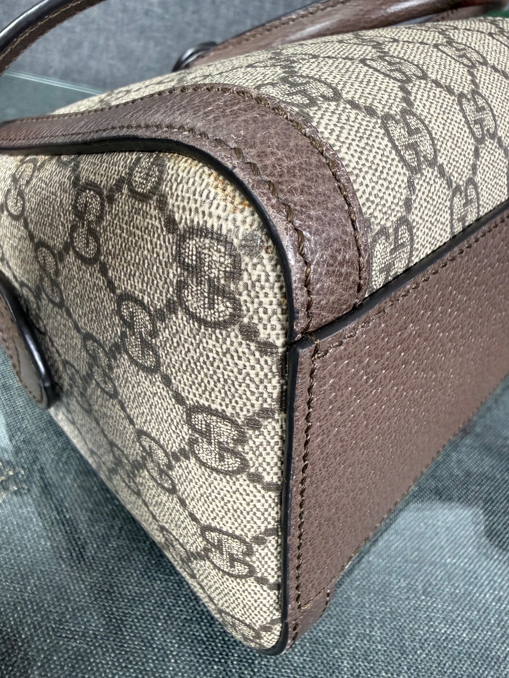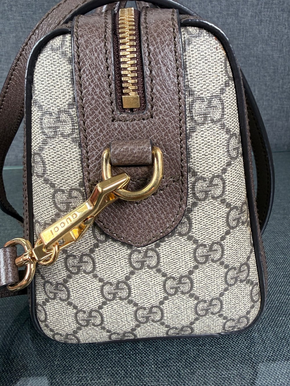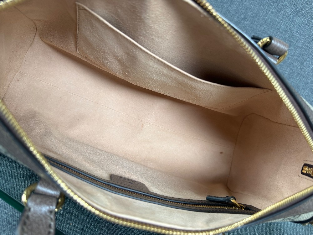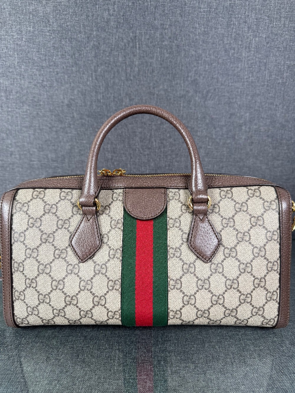 The bag in the image is a Gucci Ophidia Boston bag.