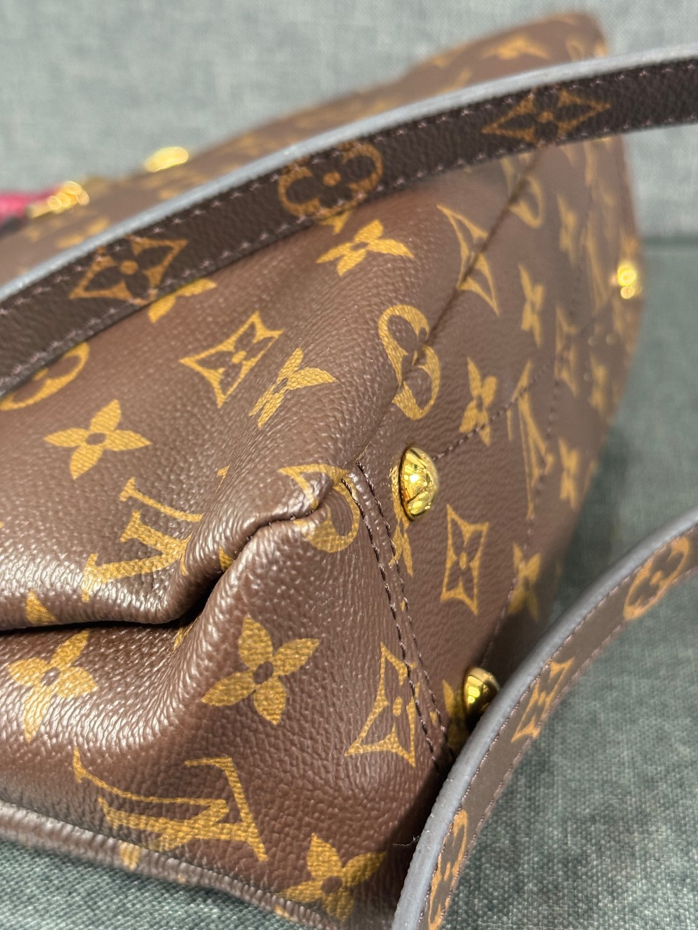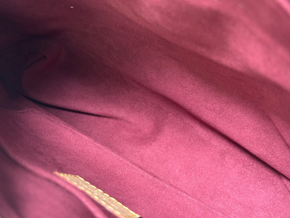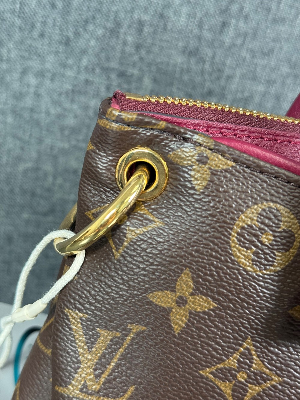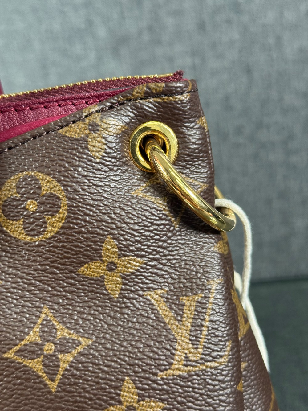 This is an authentic LOUIS VUITTON Monogram Pallas Full BB in Raisin. This petite tote is finely crafted of traditional Louis Vuitton monogram on toile coated canvas, accented by a plum leather peeping top crest. The bag features rolled leather top handles with polished brass links, an optional monogram canvas shoulder strap, and two side compartments for extra storage. The top zipper opens the bag to a plum microfiber interior with a patch pocket.