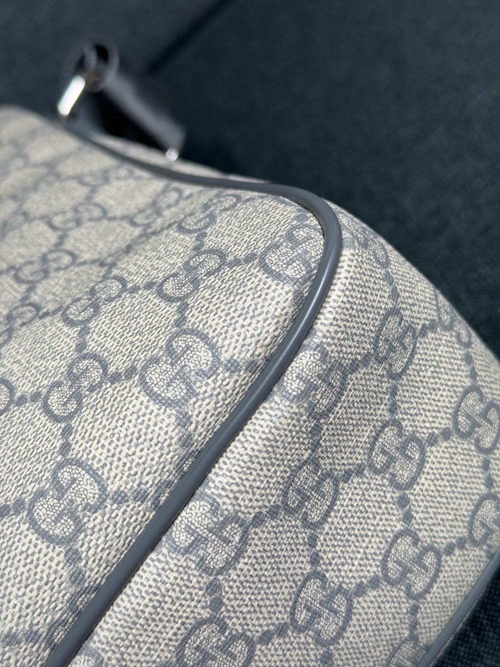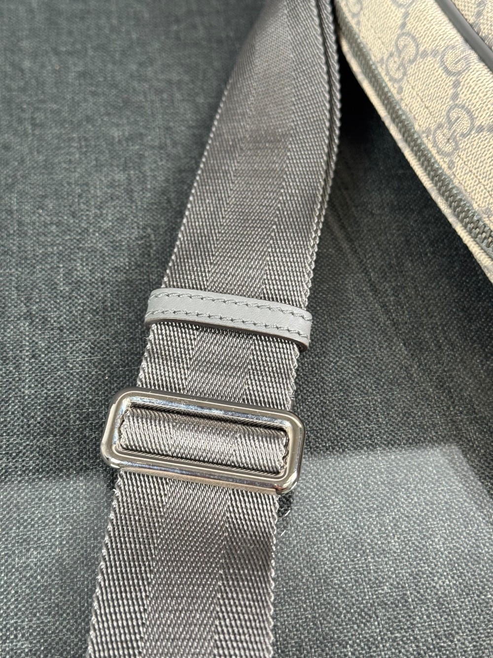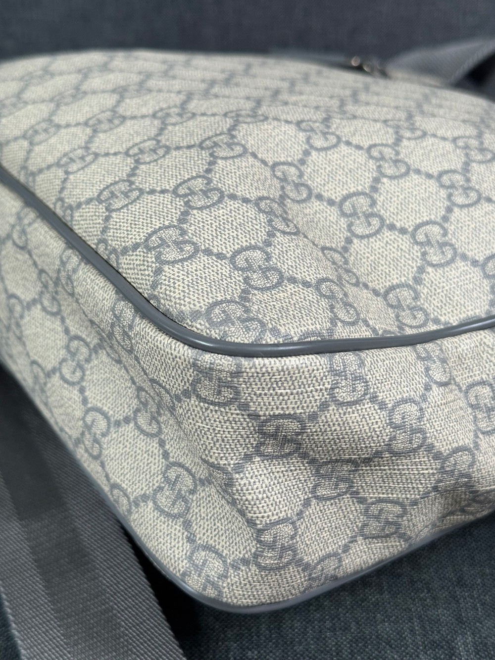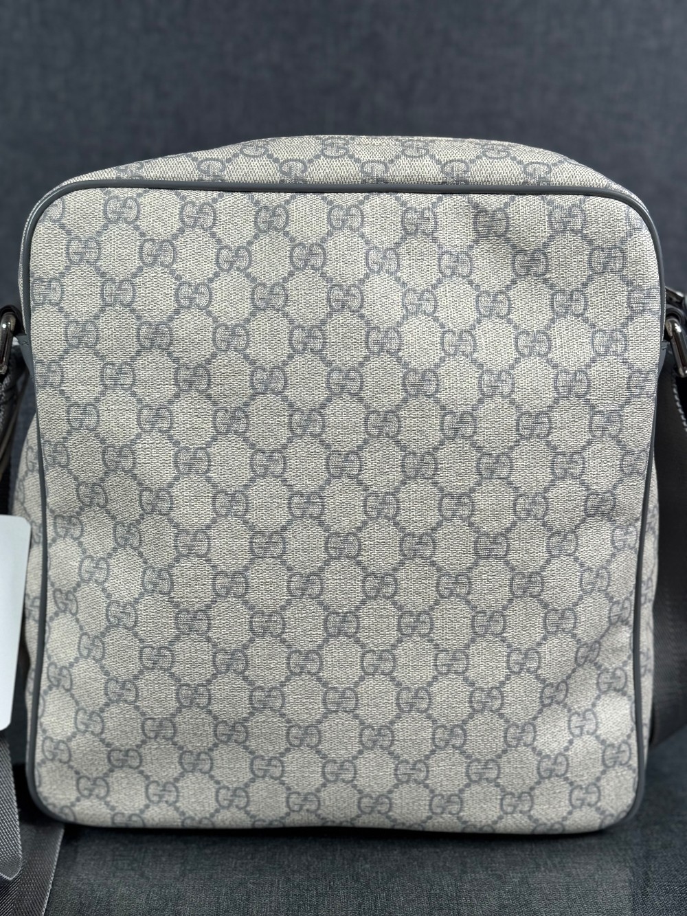 This is an authentic GUCCI GG Plus Monogram Medium Messenger Bag in Grey. This chic messenger bag is crafted of Gucci GG monogram coated canvas in beige and grey. It features an adjustable cross-body fabric shoulder strap, front zipper pocket, and leather trim. This opens to a fabric interior with a patch pocket. This bag is ideal for everyday utility with the sophisticated style of Gucci!