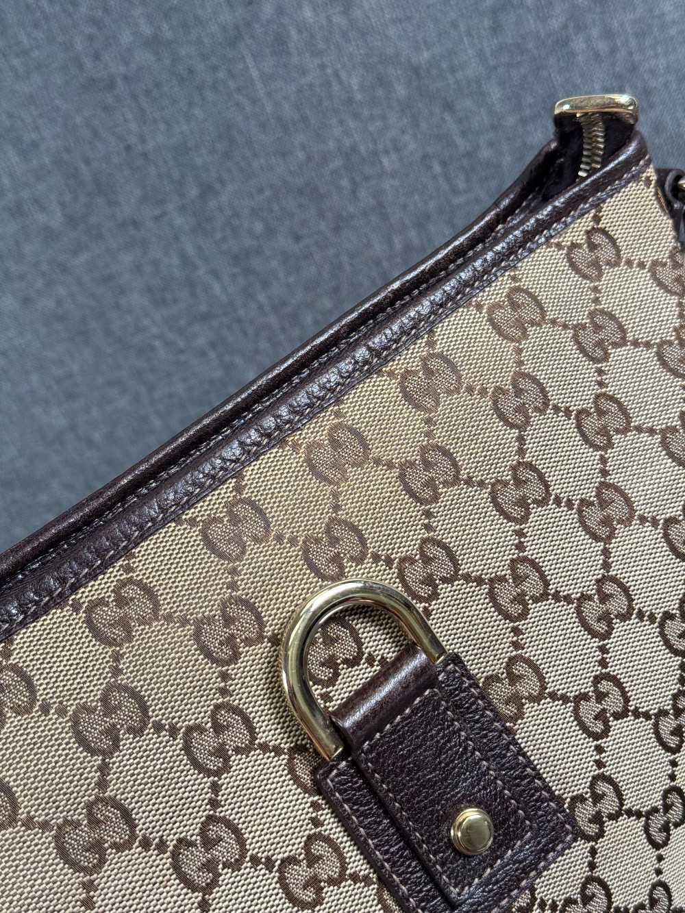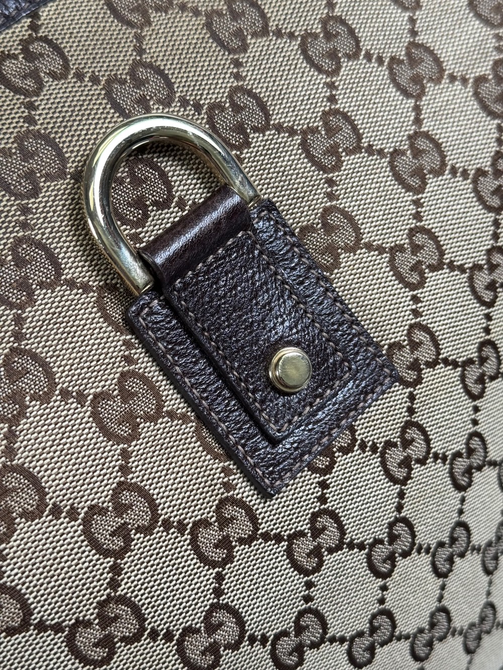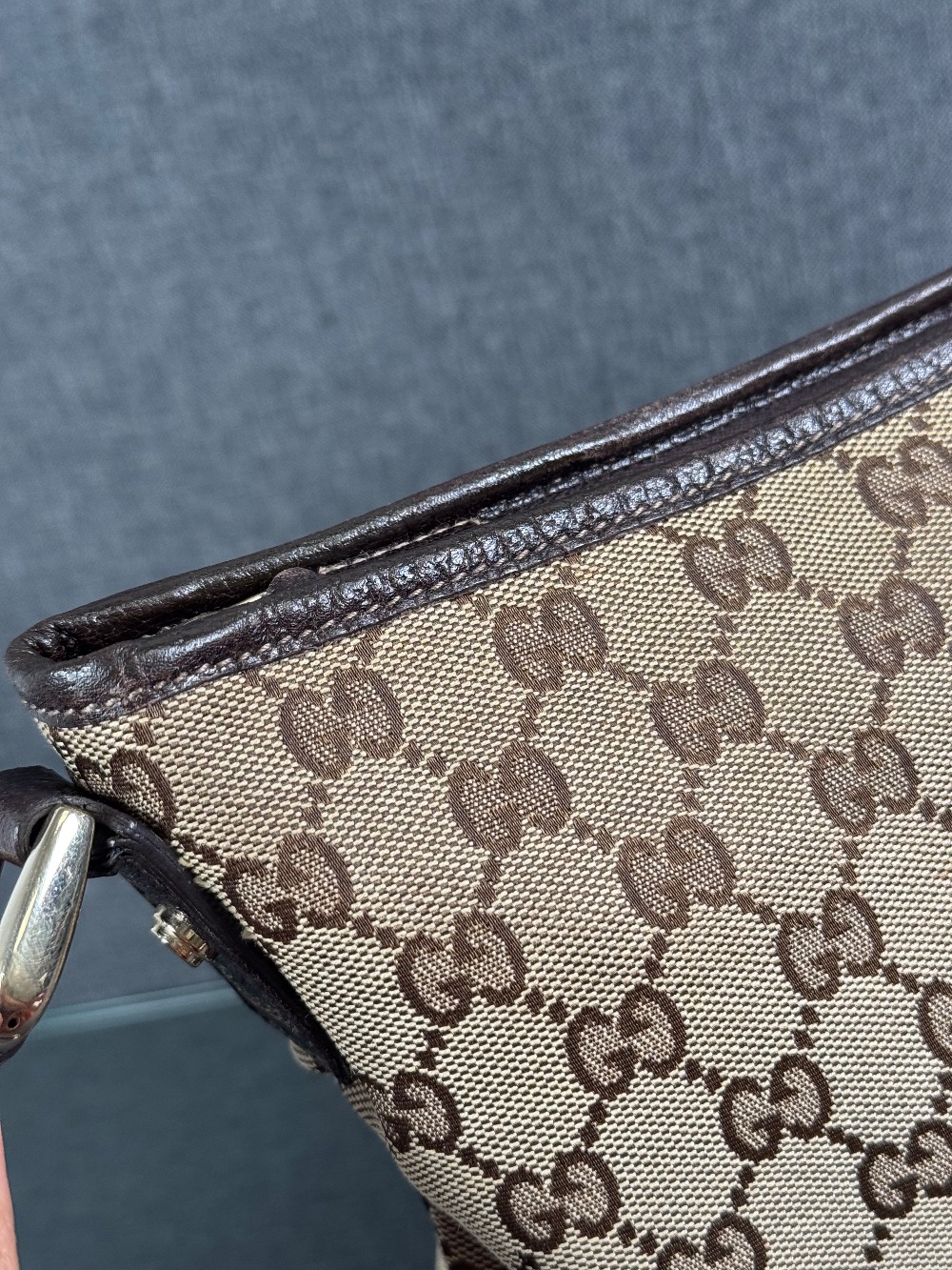 This is an authentic GUCCI Monogram Abbey Messenger Bag in Brown. This stylish cross-body bag is crafted of green Gucci GG monogram canvas. It features leather trim including a leather cross-body strap, and silver hardware including links and loops. The top is open to a spacious black fabric interior.