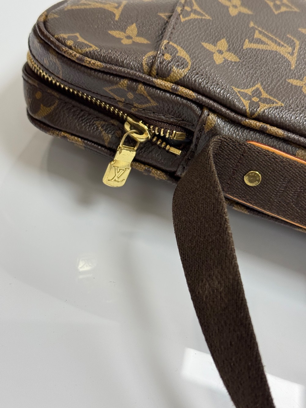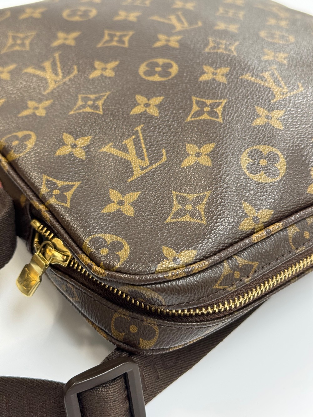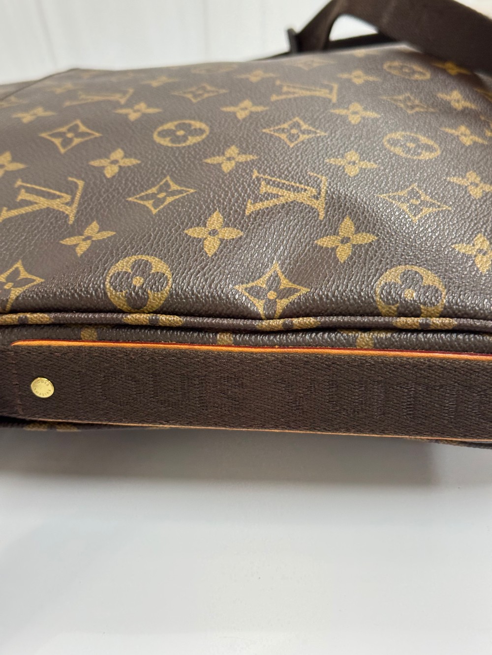 This is an authentic LOUIS VUITTON Monogram Trotteur Beaubourg. This stylish messenger bag is crafted of classic Louis Vuitton monogram coated canvas. The bag features a chocolate brown nylon body strap with the Louis Vuitton name logo and gold hardware with a flat pocket. The top zipper opens to a cocoa fabric interior with mulitiple patch pockets.