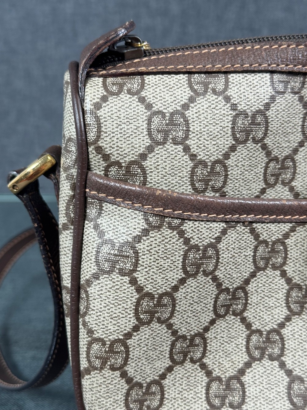Exterior Surface: deformation, rubbing, stain, slightly sticky / Leather: rubbing, stain, slight scratches / Strap: rubbing, stain, shapeless, scratches, cracks / Metal accessories: scratches Interior rubbing, fabric lining tear,