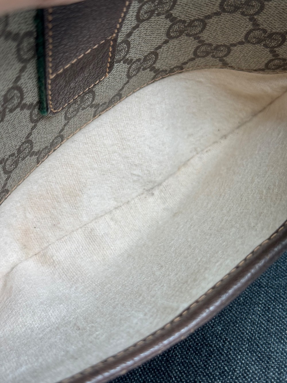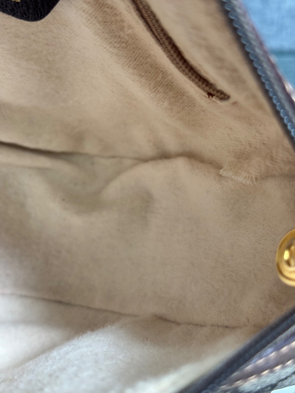 dust, detached Pocket rubbing, stain Corner rubbing **The base of the strap has weakened.