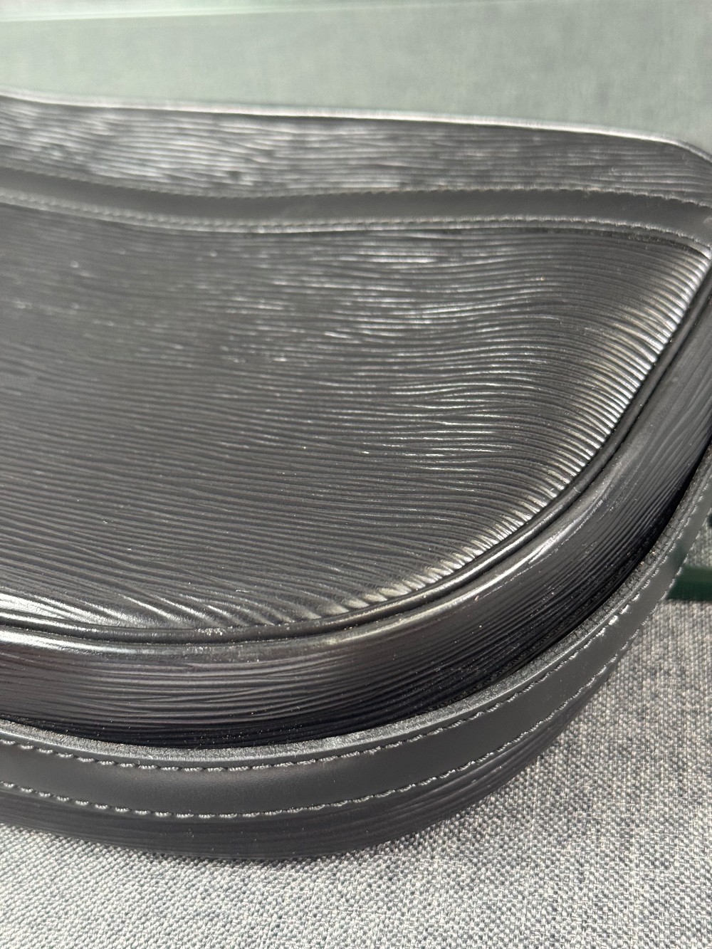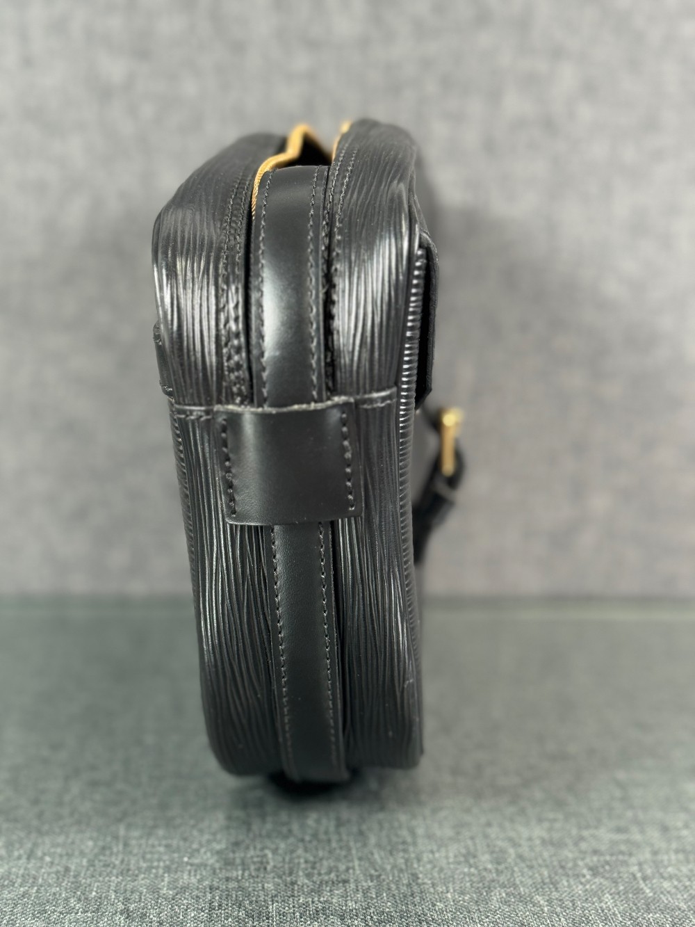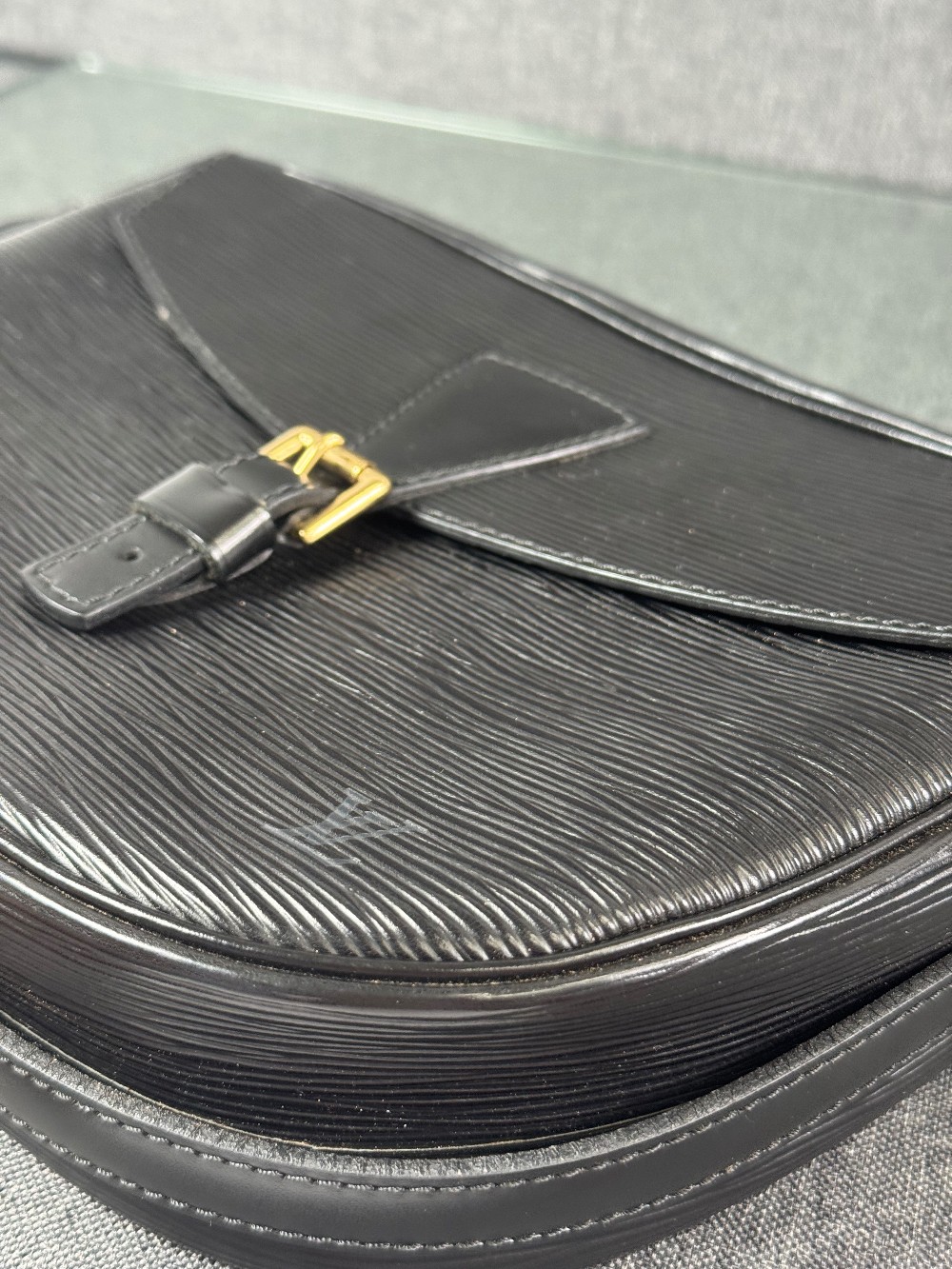 This is an authentic LOUIS VUITTON Epi Jeune Fille in Black. This chic shoulder bag is crafted of Louis Vuitton signature textured epi leather. The bag features an adjustable leather cross-body strap with a belt and polished brass buckle for the frontal flap. This opens to a cross-grain leather interior. This is an excellent shoulder bag, ideal for everyday use, from Louis Vuitton!