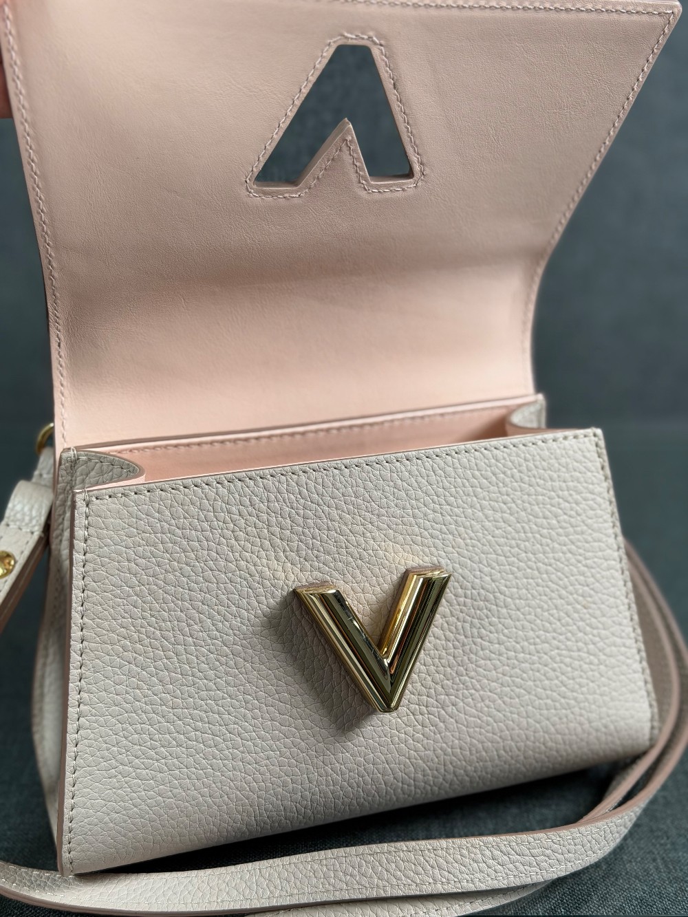 The Twist One Handle handbag is reinterpreted in a BB size. This small bag in deep-dyed Taurillon leather comes with a single top handle, and iconic LV Twist lock on its flap. It’s lined with leather in a contrasting color for an discreet touch of style. The Twist One Handle offers cross-body, shoulder and hand carry.