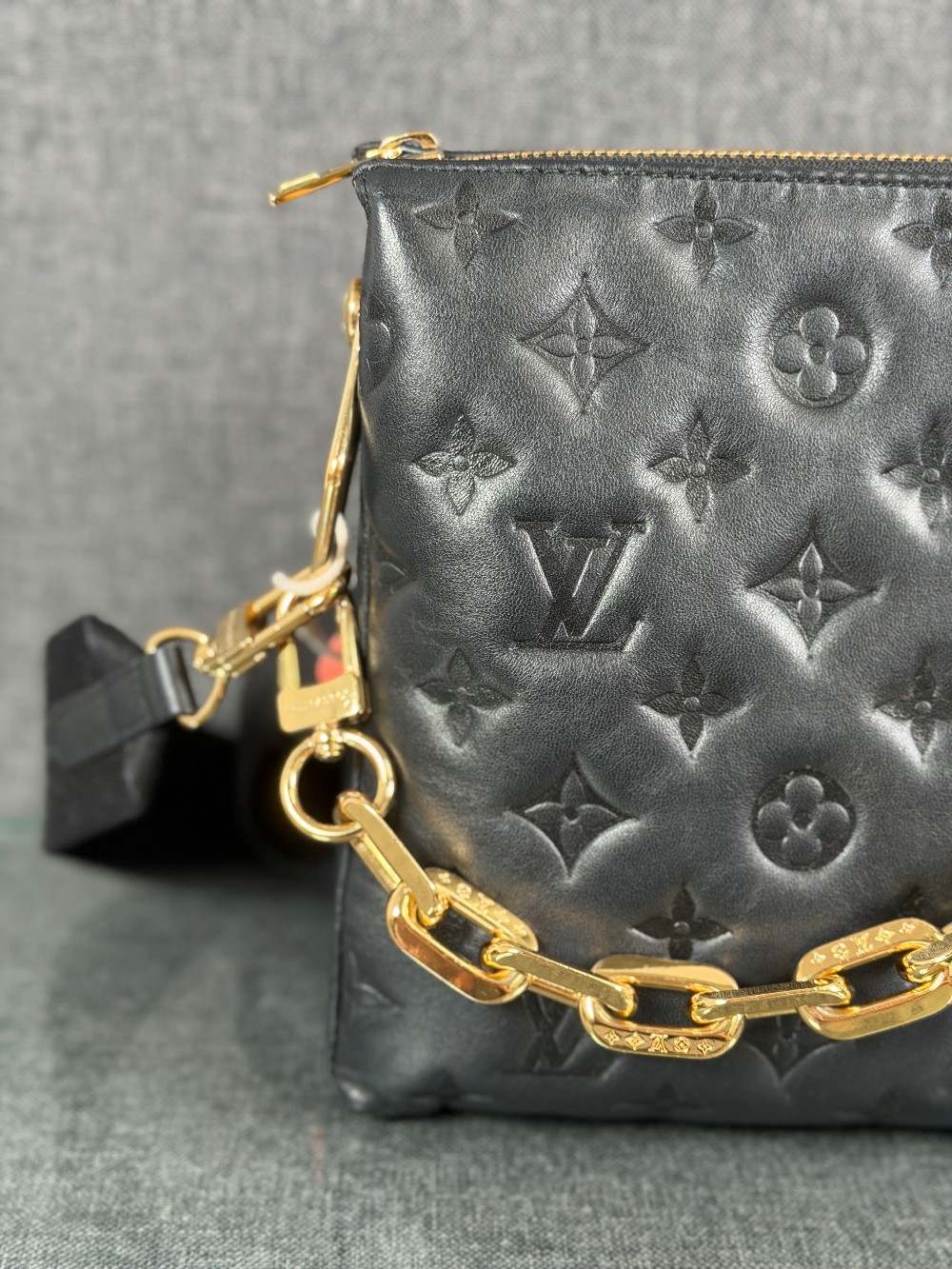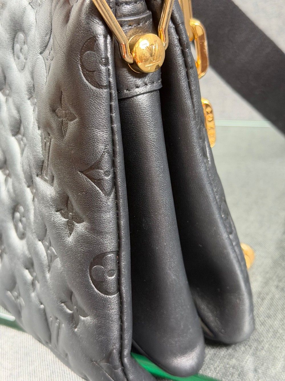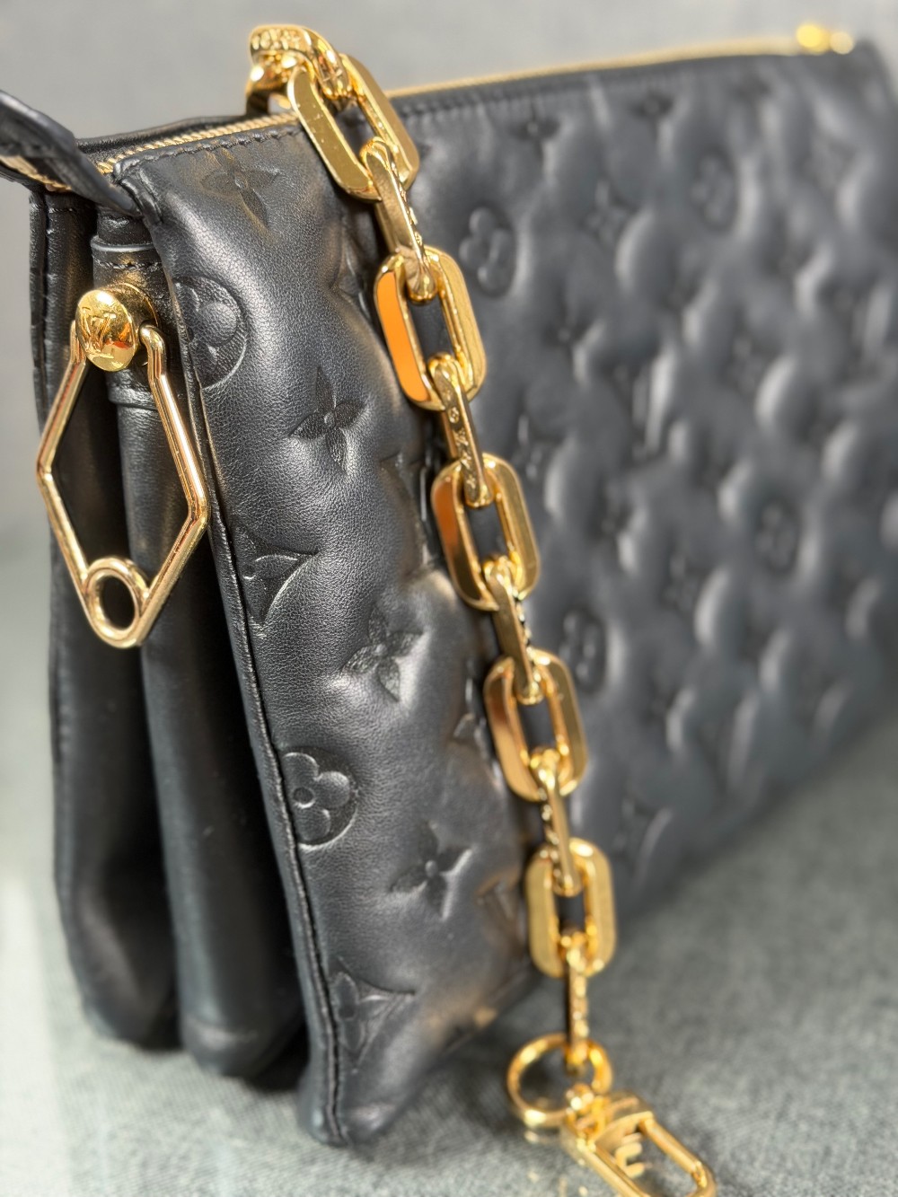 Monogram-embossed puffy lambskin