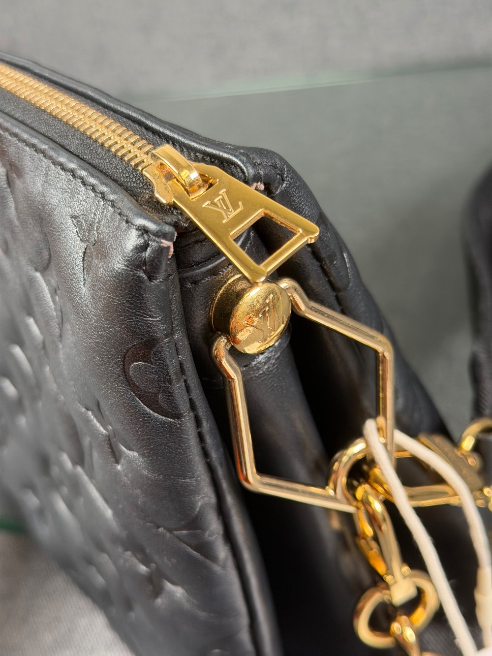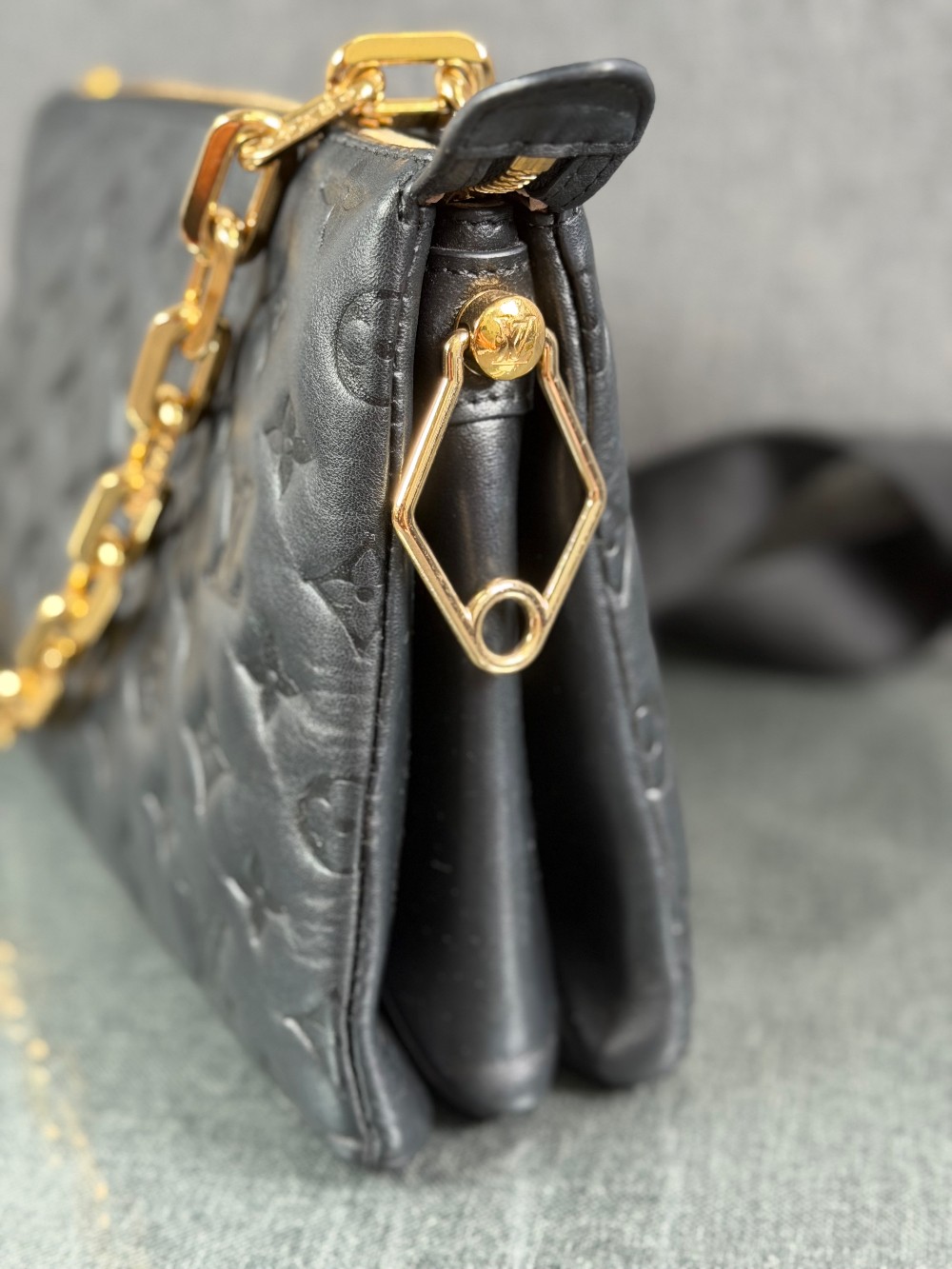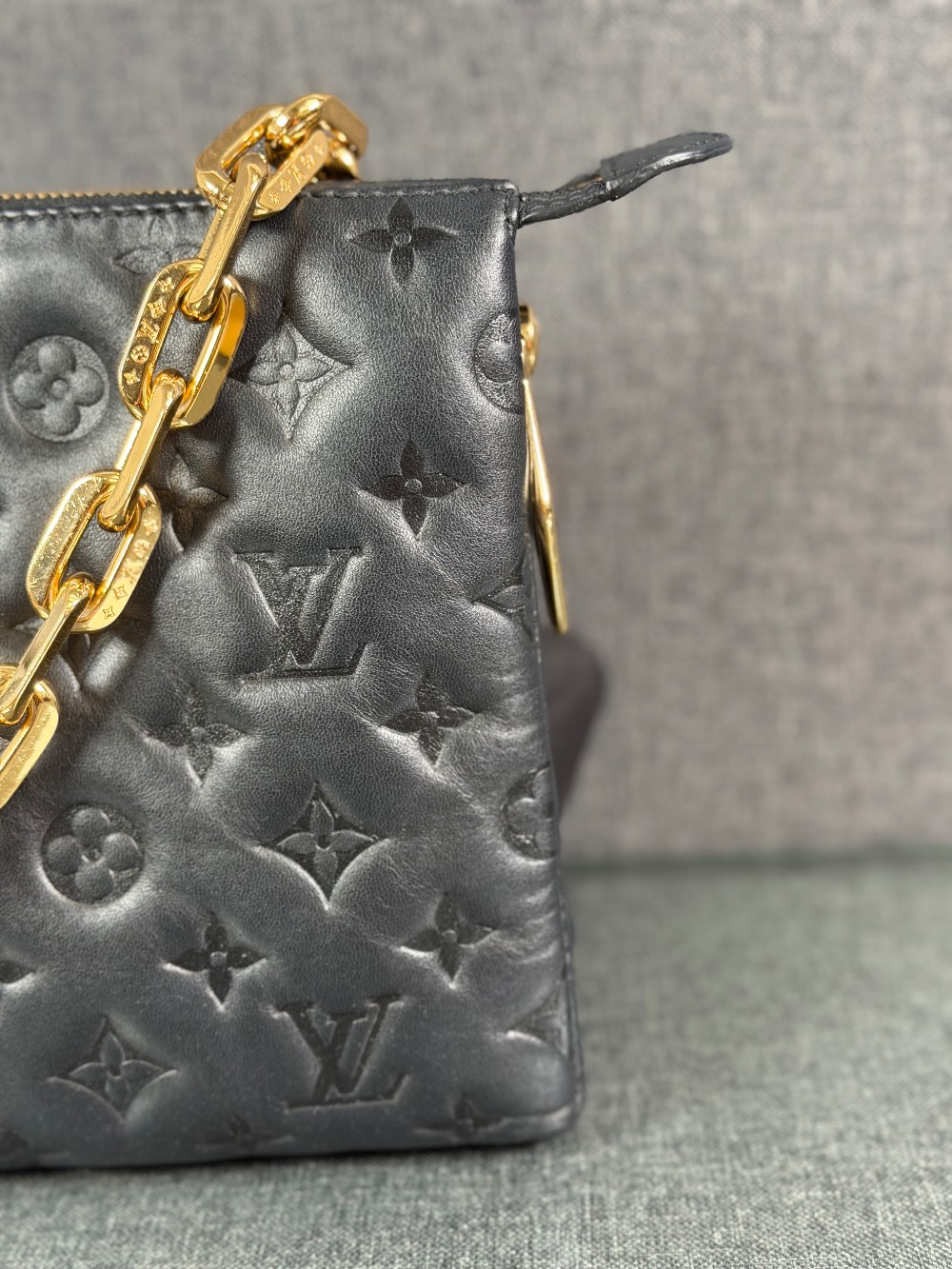 Monogram-embossed puffy lambskin