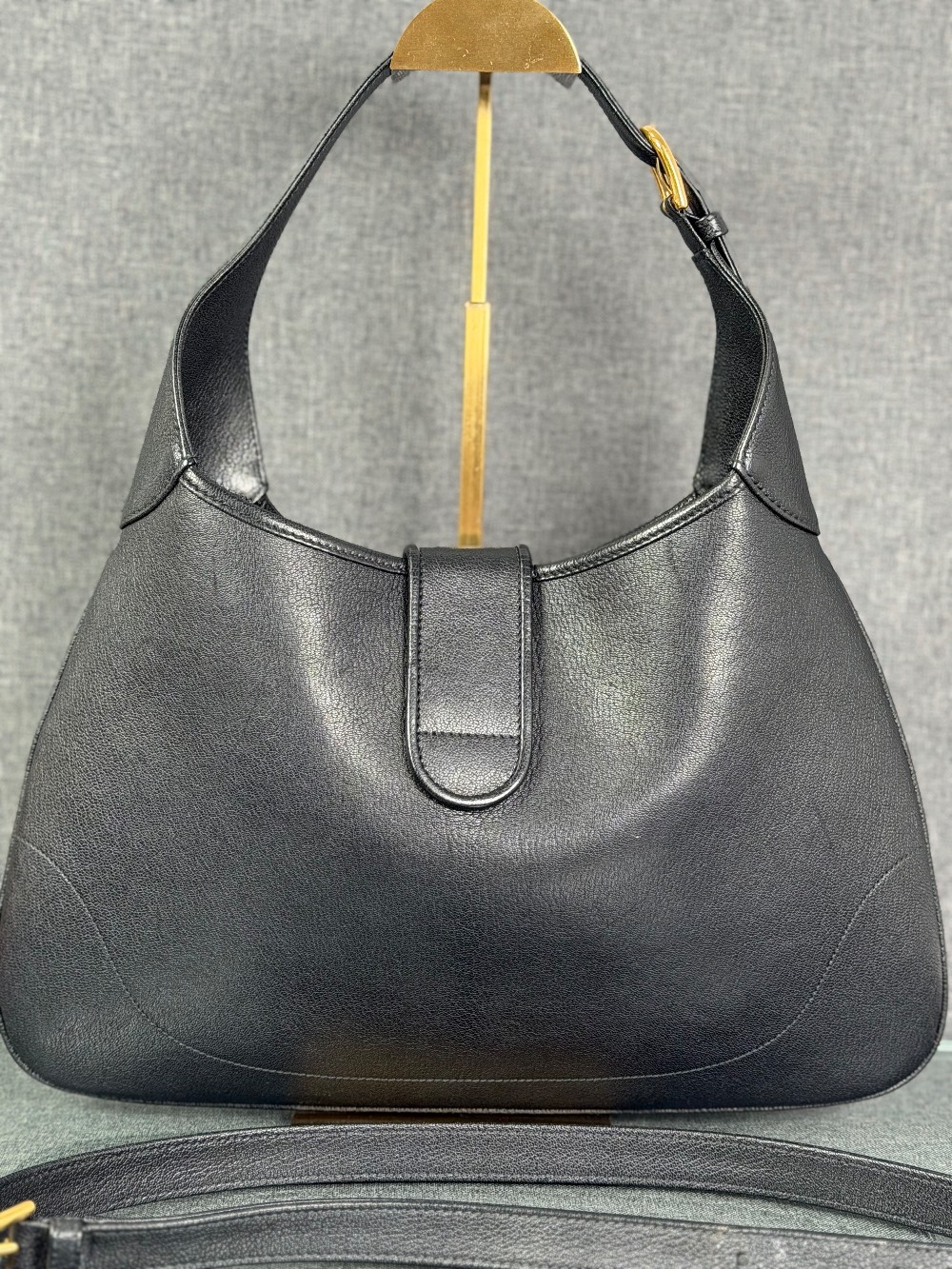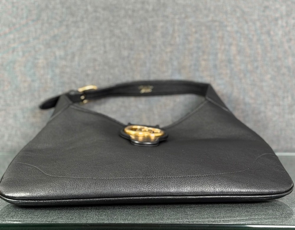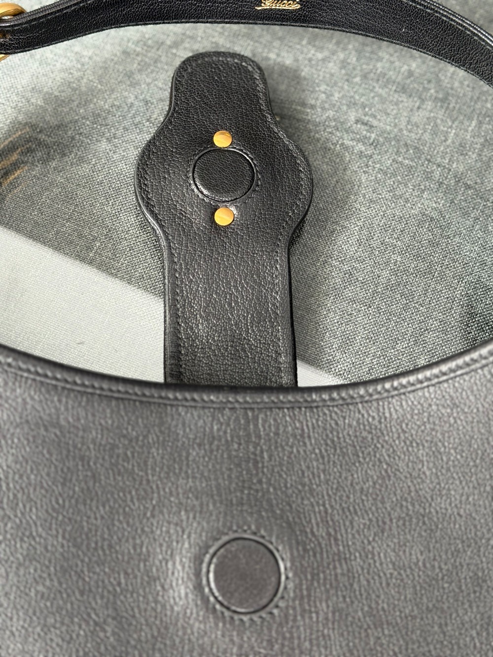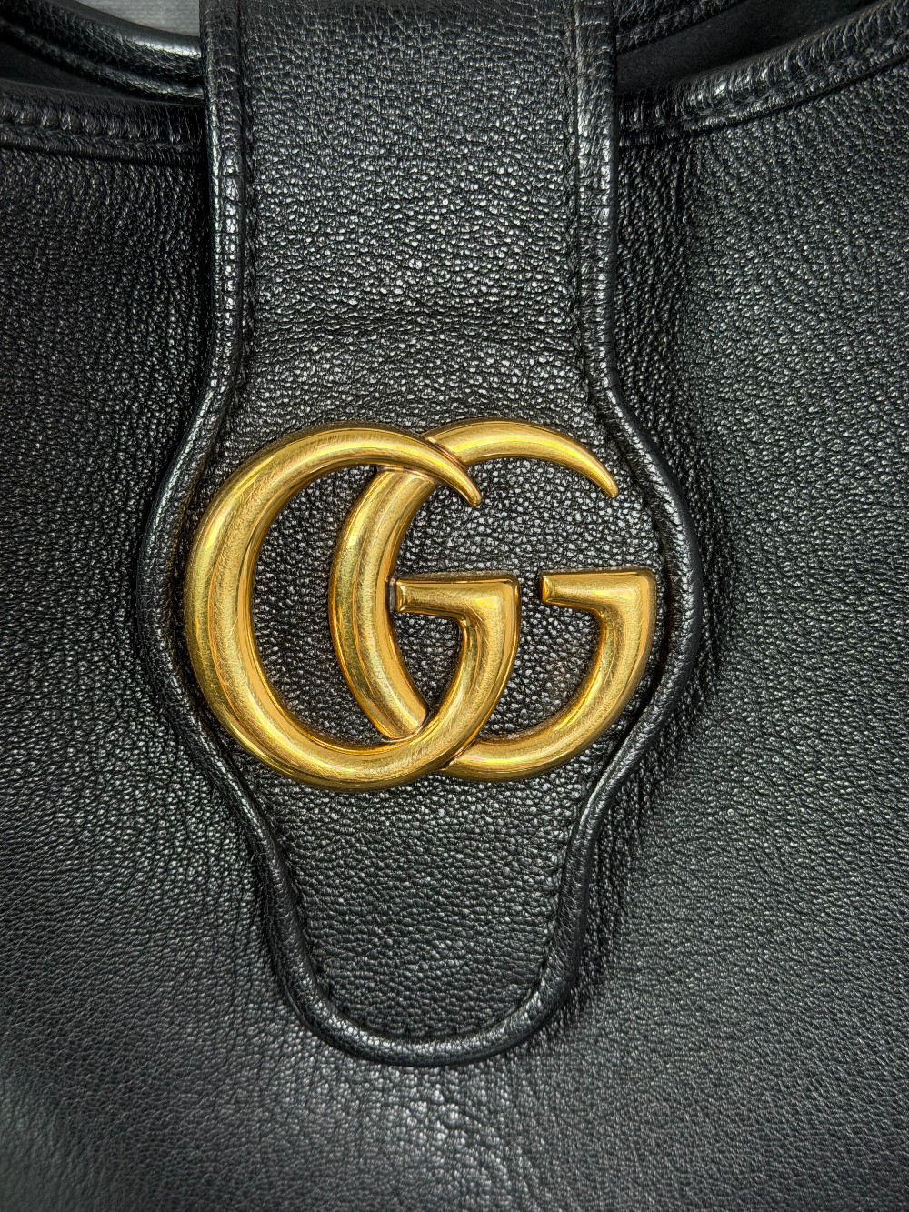 This is an authentic GUCCI Goatskin Medium Aphrodite Shoulder Bag in Black. This classic hobo bag is crafted of black goatskin leather. The bag features a stylish looping shoulder strap and optional long shoulder strap. The crossover strap features a gold GG logo that opens to a black microfiber interior with a zipper pocket.
