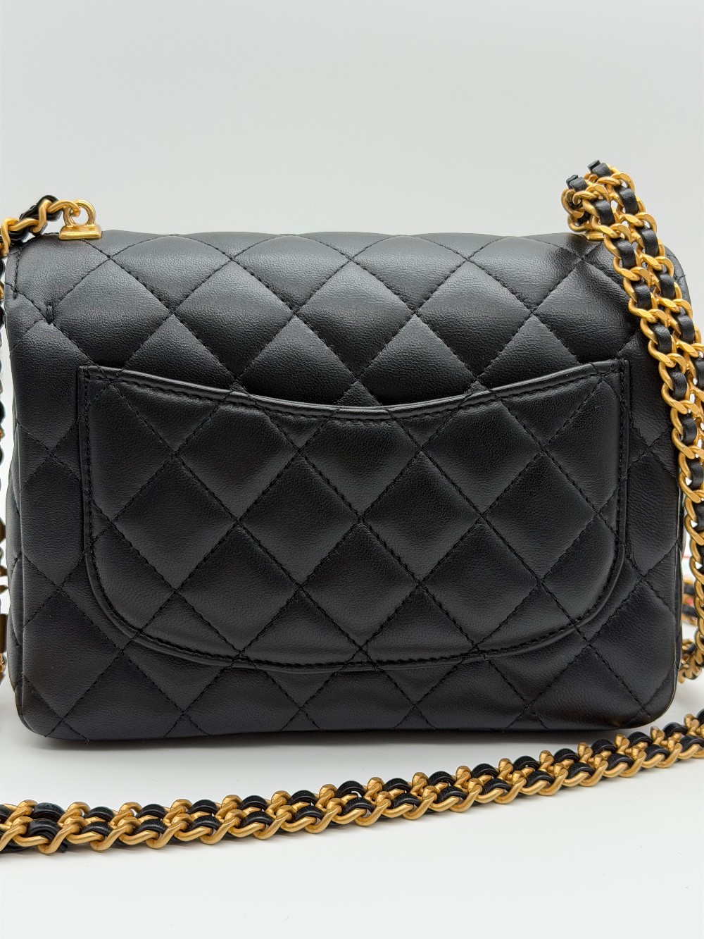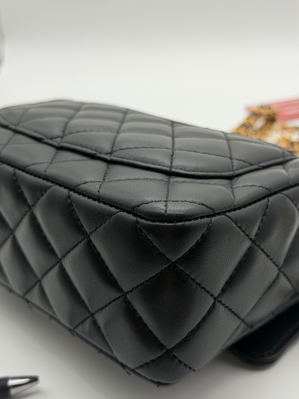 This is an authentic Chanel Mini Square Flap Bag, a compact and highly sought-after piece from the Classic Flap collection.
