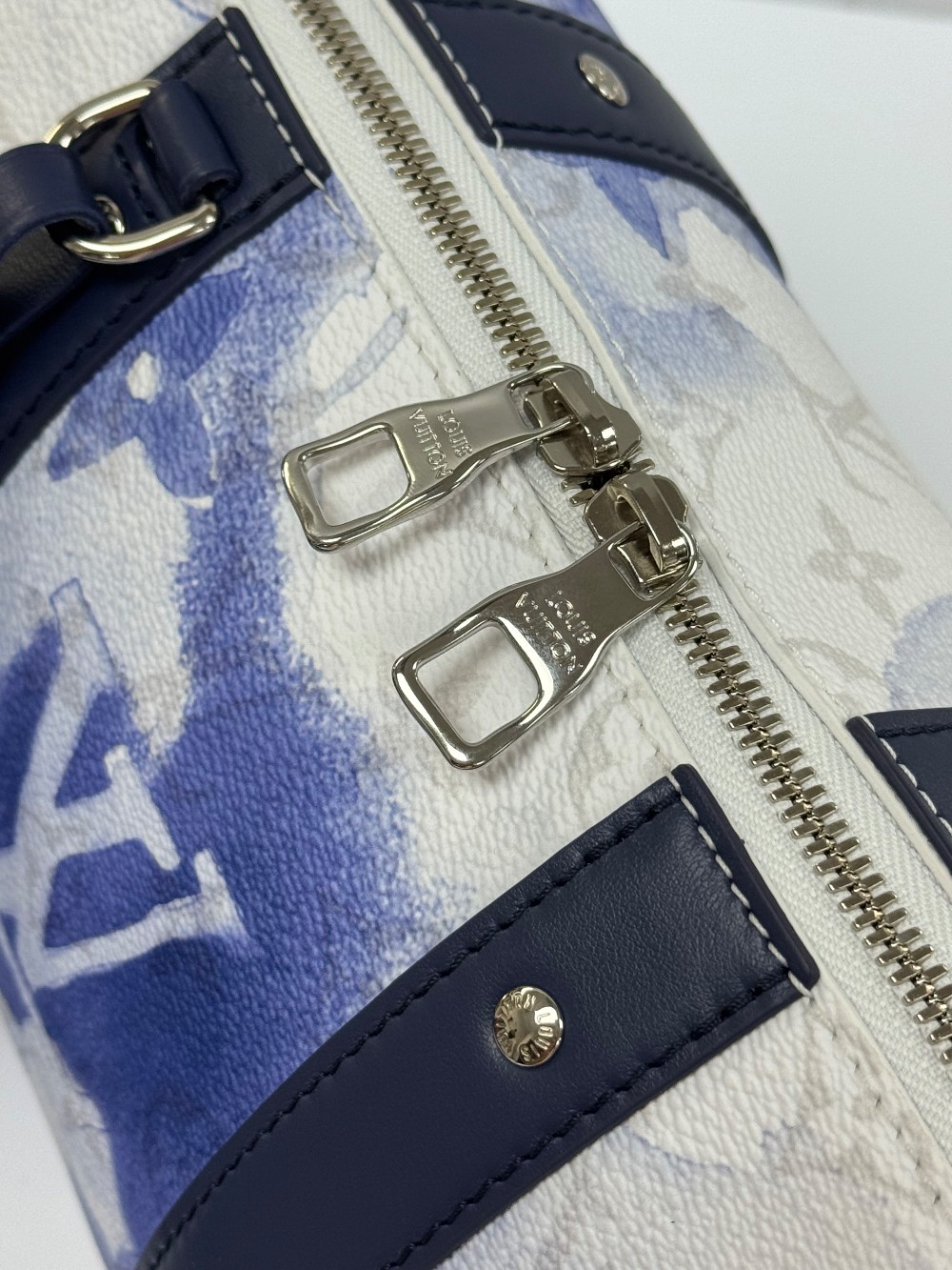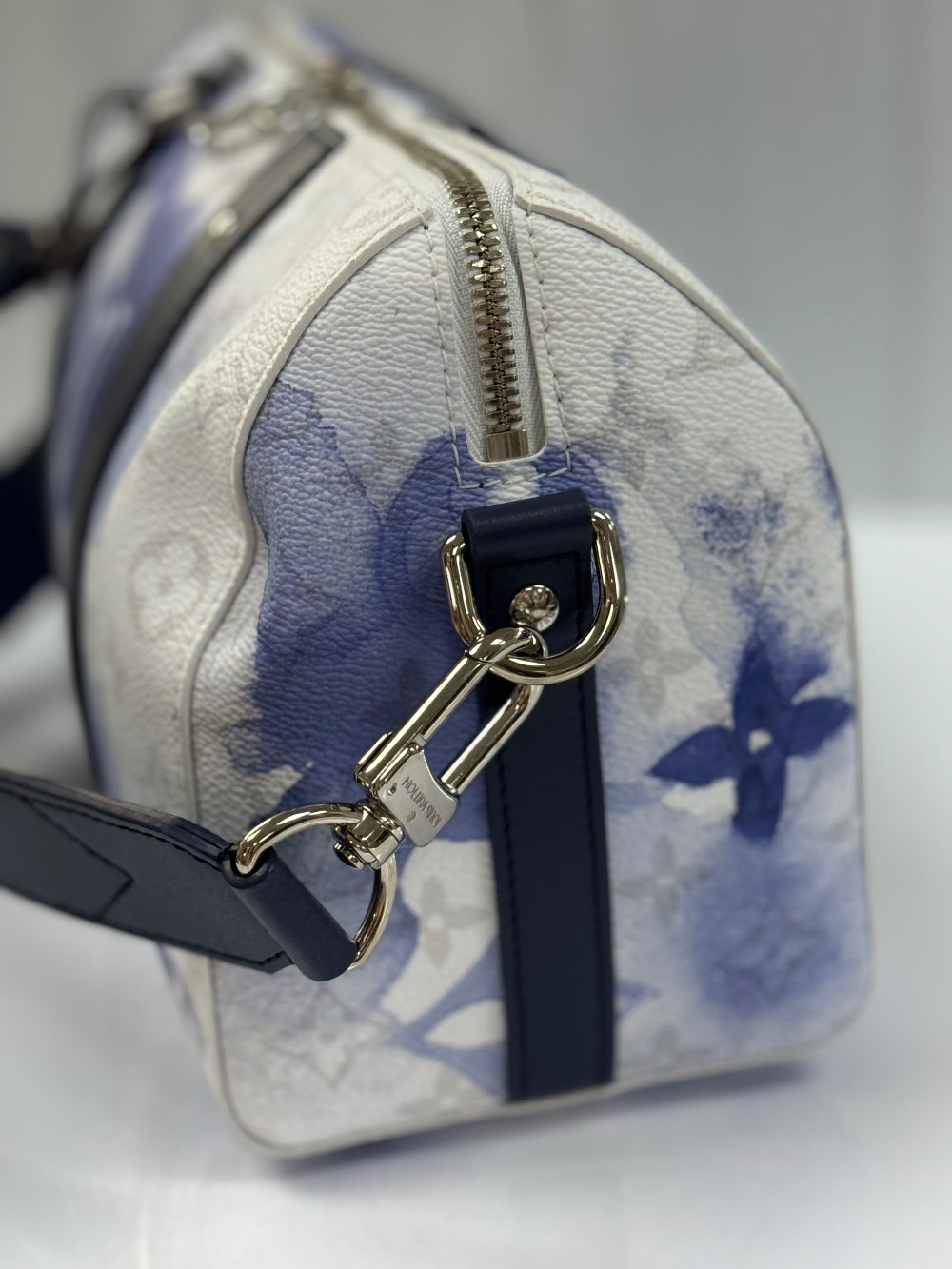 Bring a splash of artistic beauty to your travels with this imaginative Louis Vuitton Boston bag. Its fluid, colorful take on the classic monogram creates a fresh and vibrant statement. This piece is a fantastic way to carry your belongings with a truly unique and expressive touch.