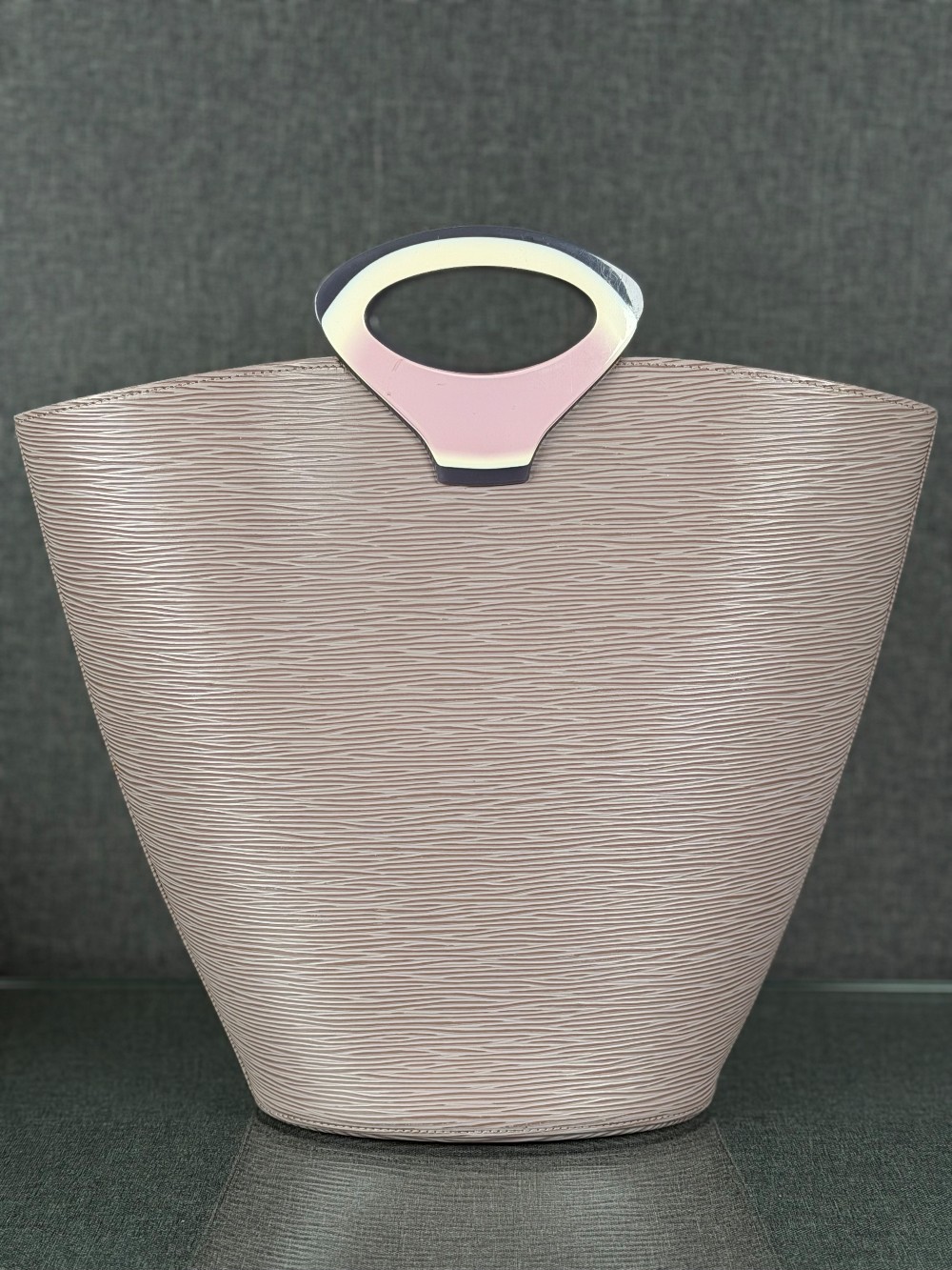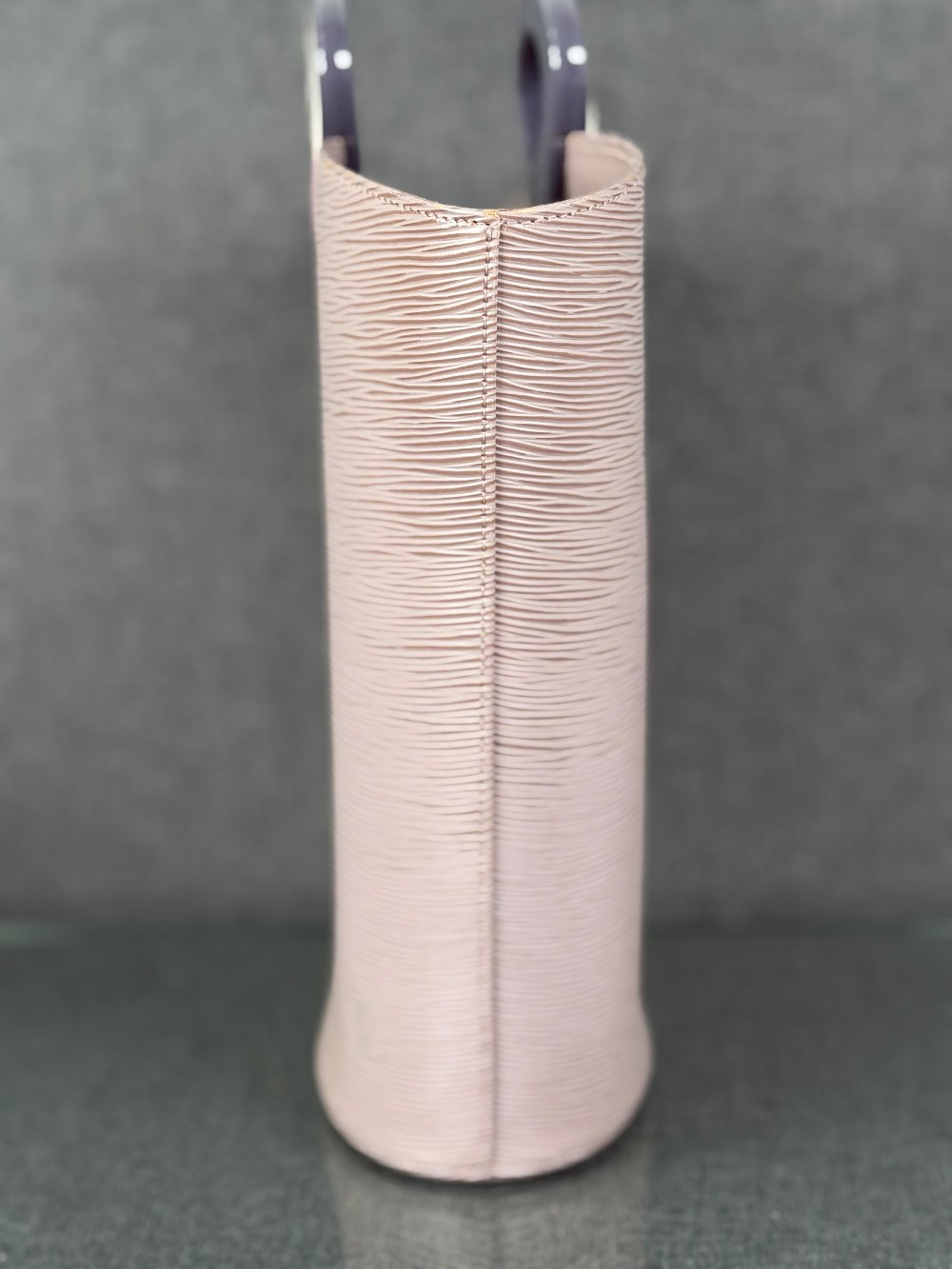 This is an authentic LOUIS VUITTON Epi Noctambule Tote in Lilac. This chic bag is in the stylish epi line of bags with distinctive and modern styles. This Noctambule is crafted of lilac textured epi leather in a simple but modern inverted bell shape with a rounded top. It has elegant multicolor resin handles that are applied to the bag for a very chic look. The interior is a soft lilac colored suede with a patch pocket. This is an ultra-stylish and no-hassle tote for all of your everyday needs, from Louis Vuitton!