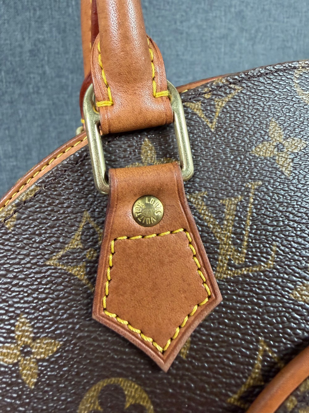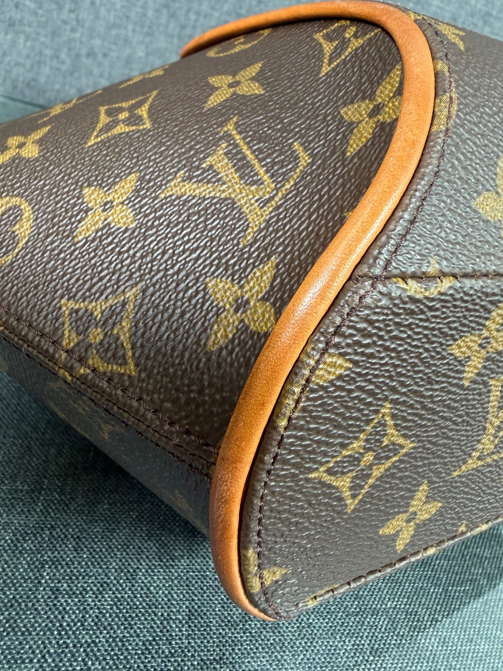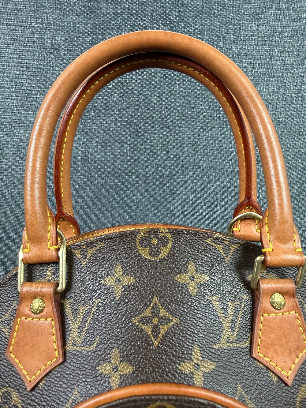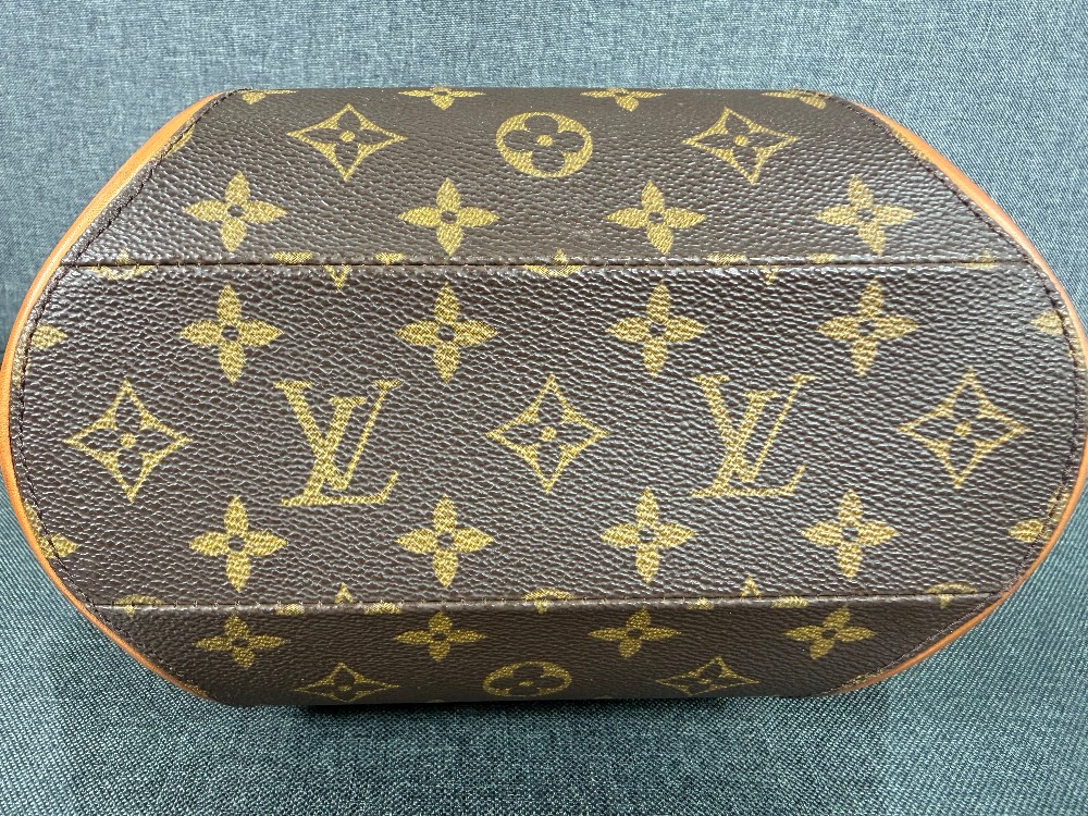 This is an authentic LOUIS VUITTON Monogram Ellipse PM. This bowling style tote is crafted of traditional Louis Vuitton monogram coated canvas. The bag features vachetta leather piping and rolled leather handles with brass hardware accents. This bag opens to a cocoa brown fabric interior with a slip pocket.