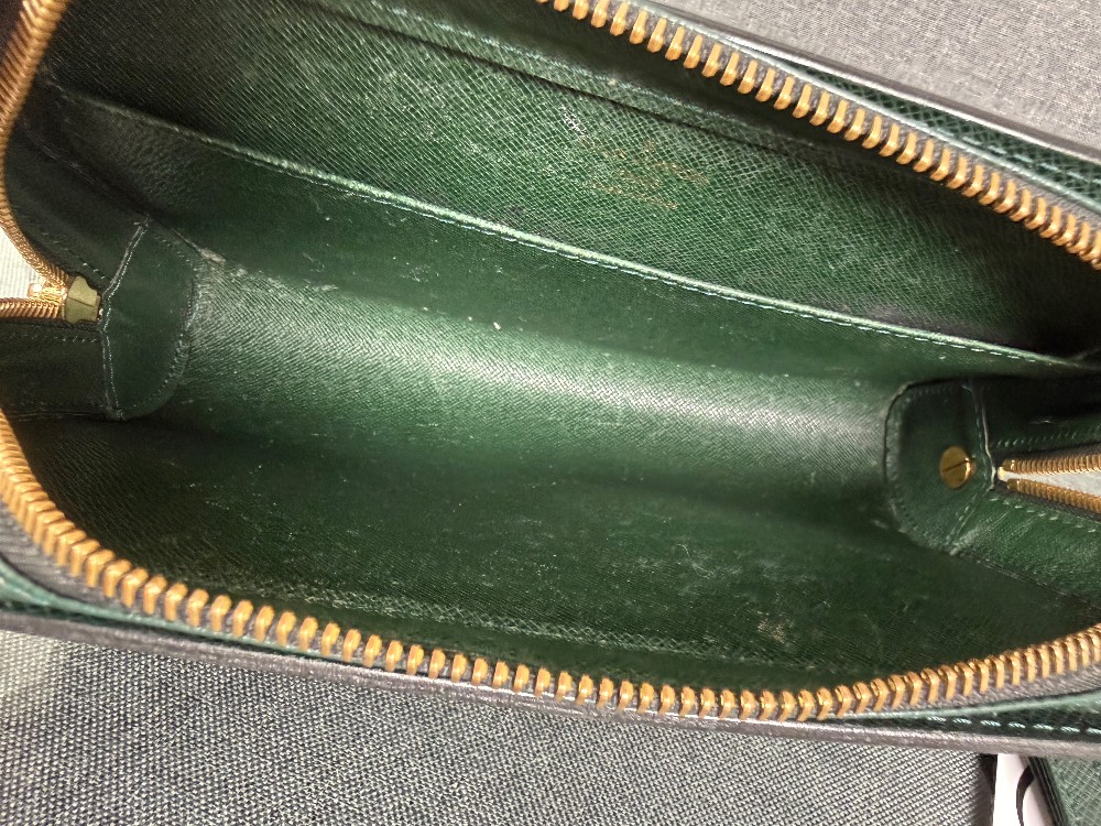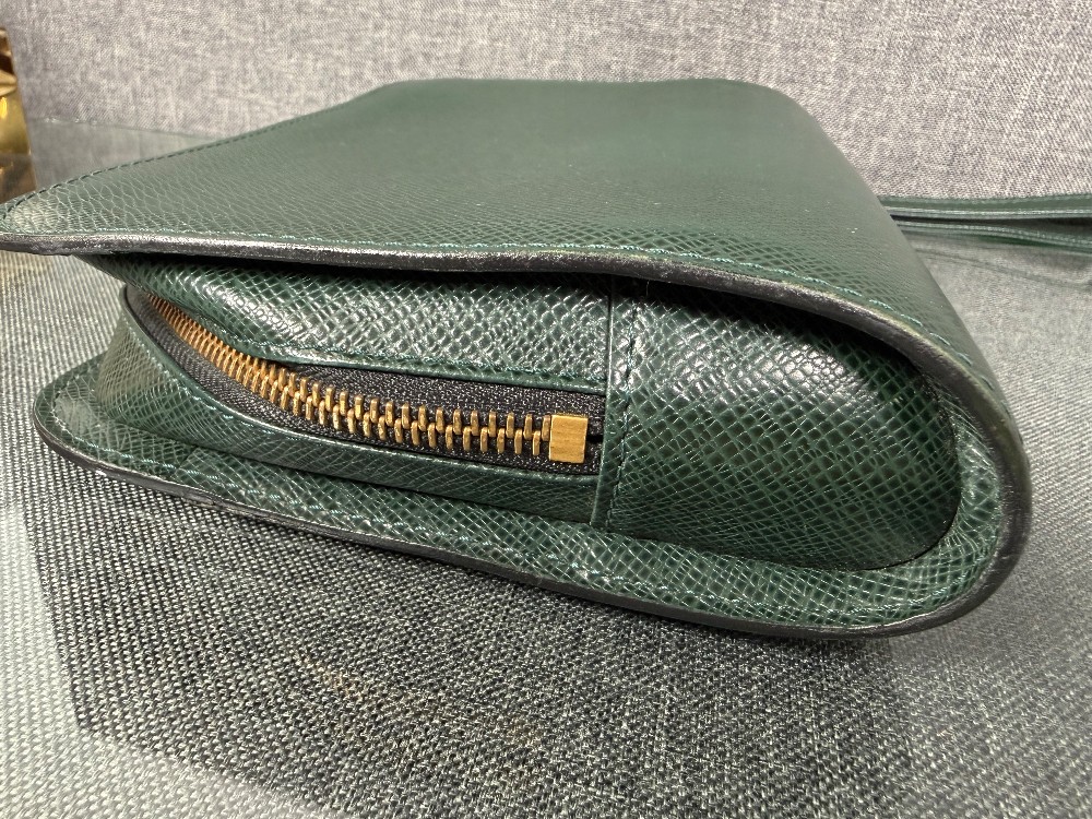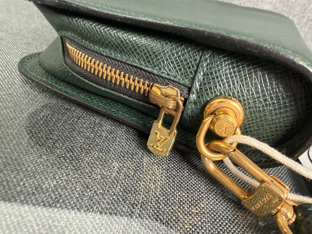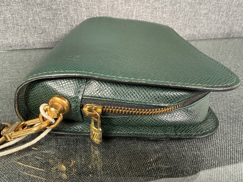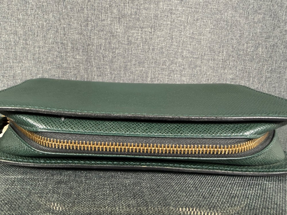 This is an authentic Louis Vuitton Taiga Leather Clutch Bag in the "Episea" green color.