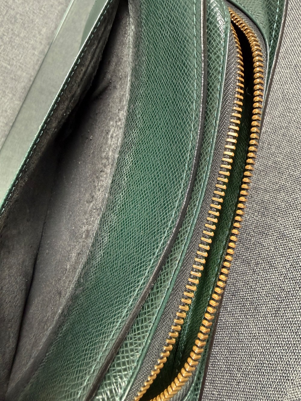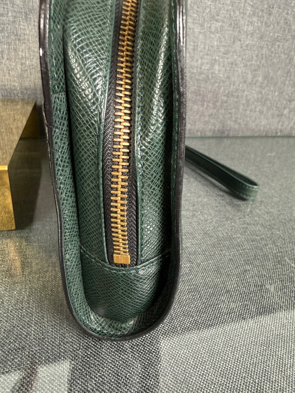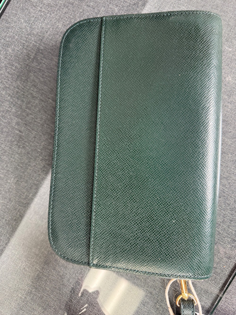 This is an authentic Louis Vuitton Taiga Leather Clutch Bag in the "Episea" green color.