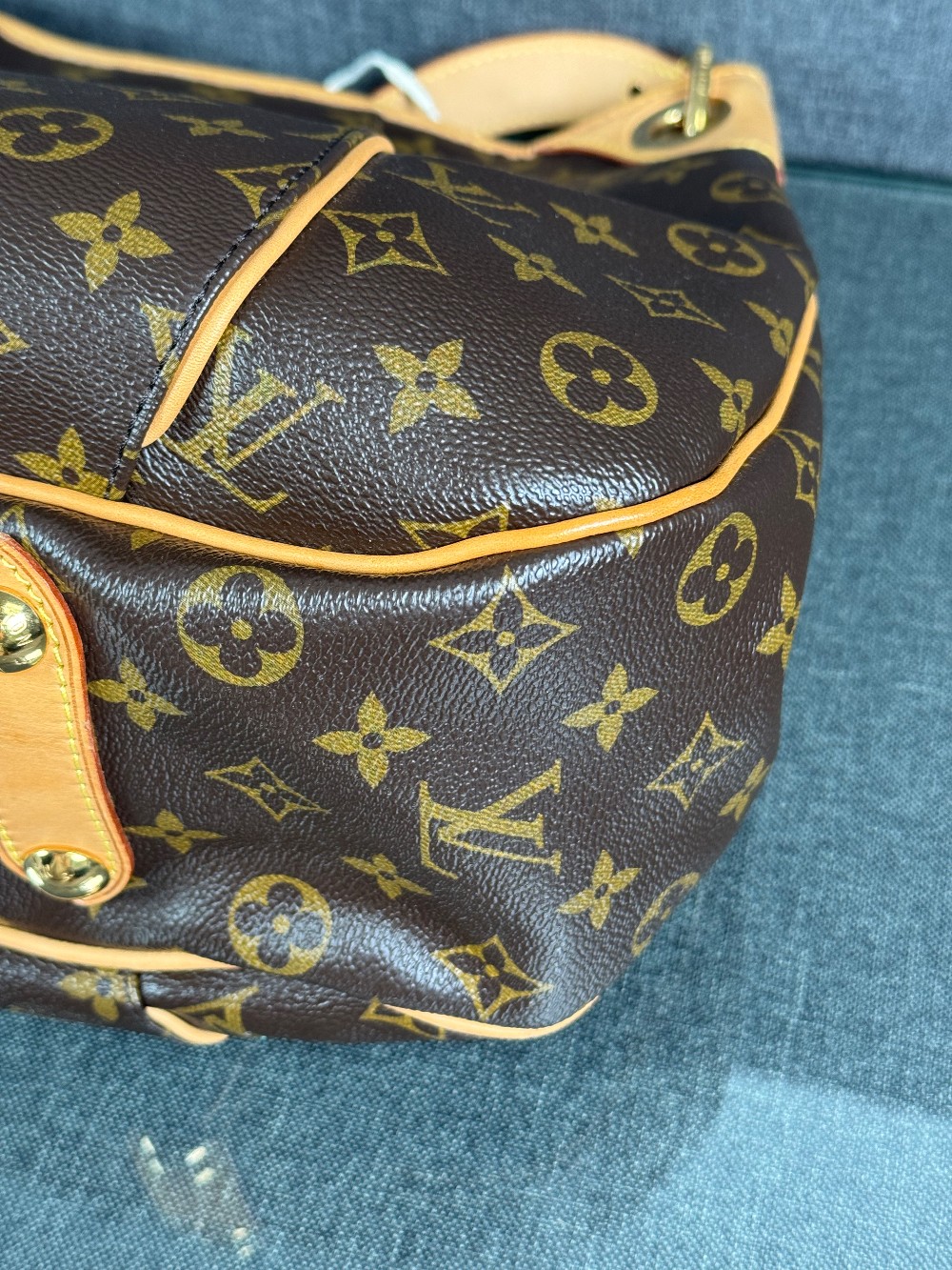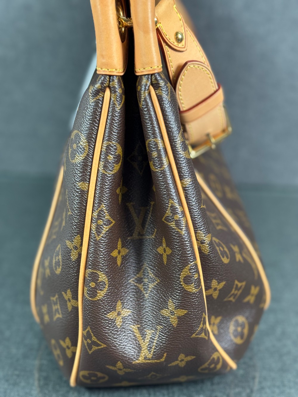 This is an authentic LOUIS VUITTON Monogram Galliera PM. This hobo-style handbag is crafted of Louis Vuitton's signature monogram canvas in brown. It features a vachetta cowhide leather shoulder strap, piping, trim, and gold tone hardware. The top opens to a beige microfiber interior with a large snap pocket and pockets.