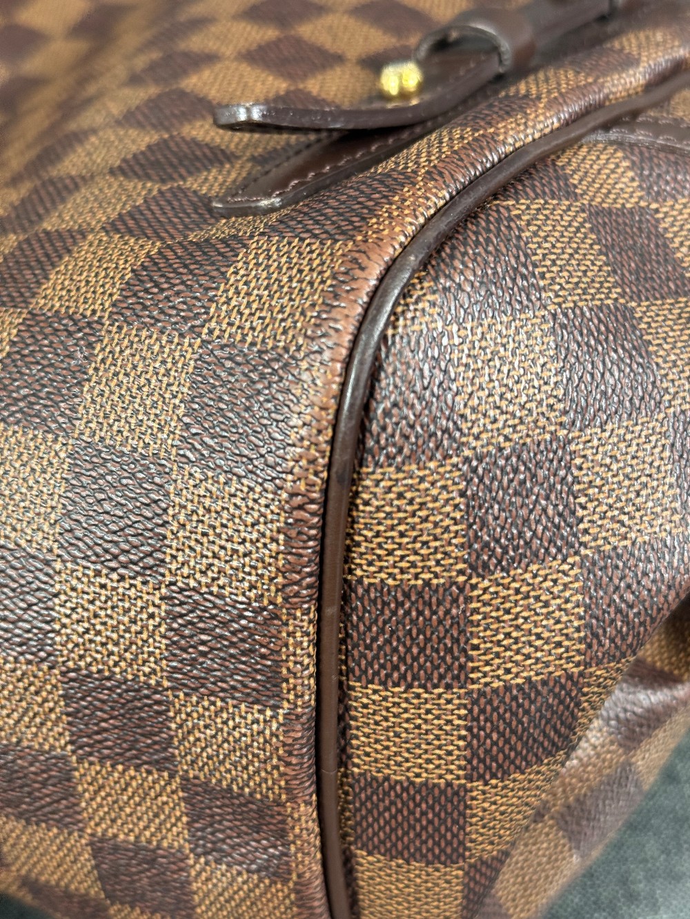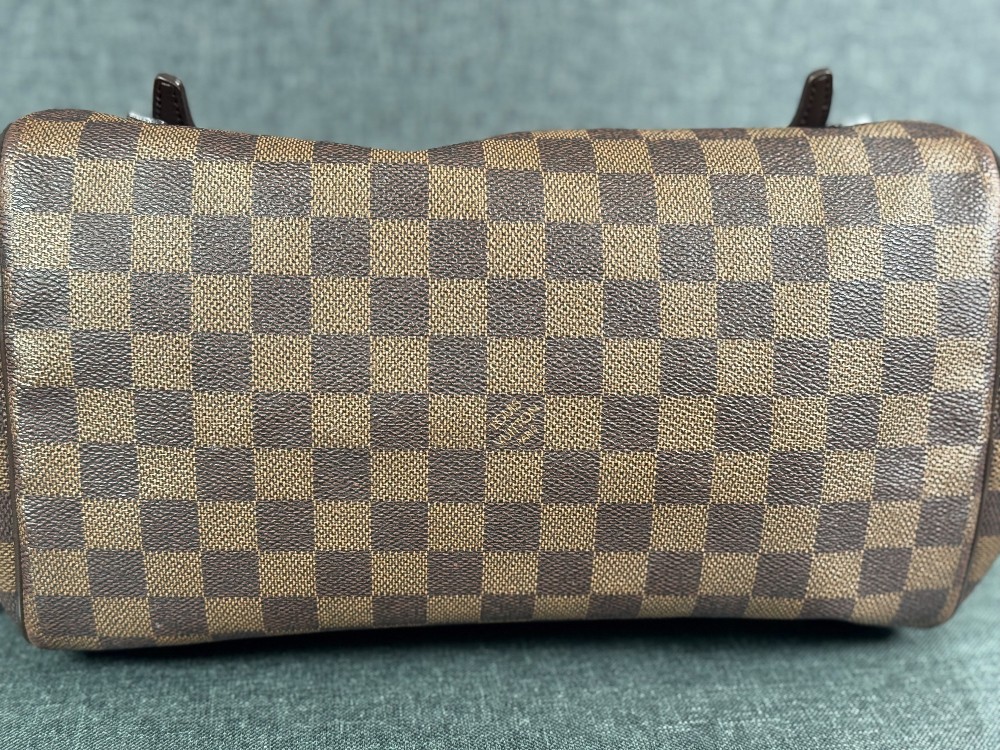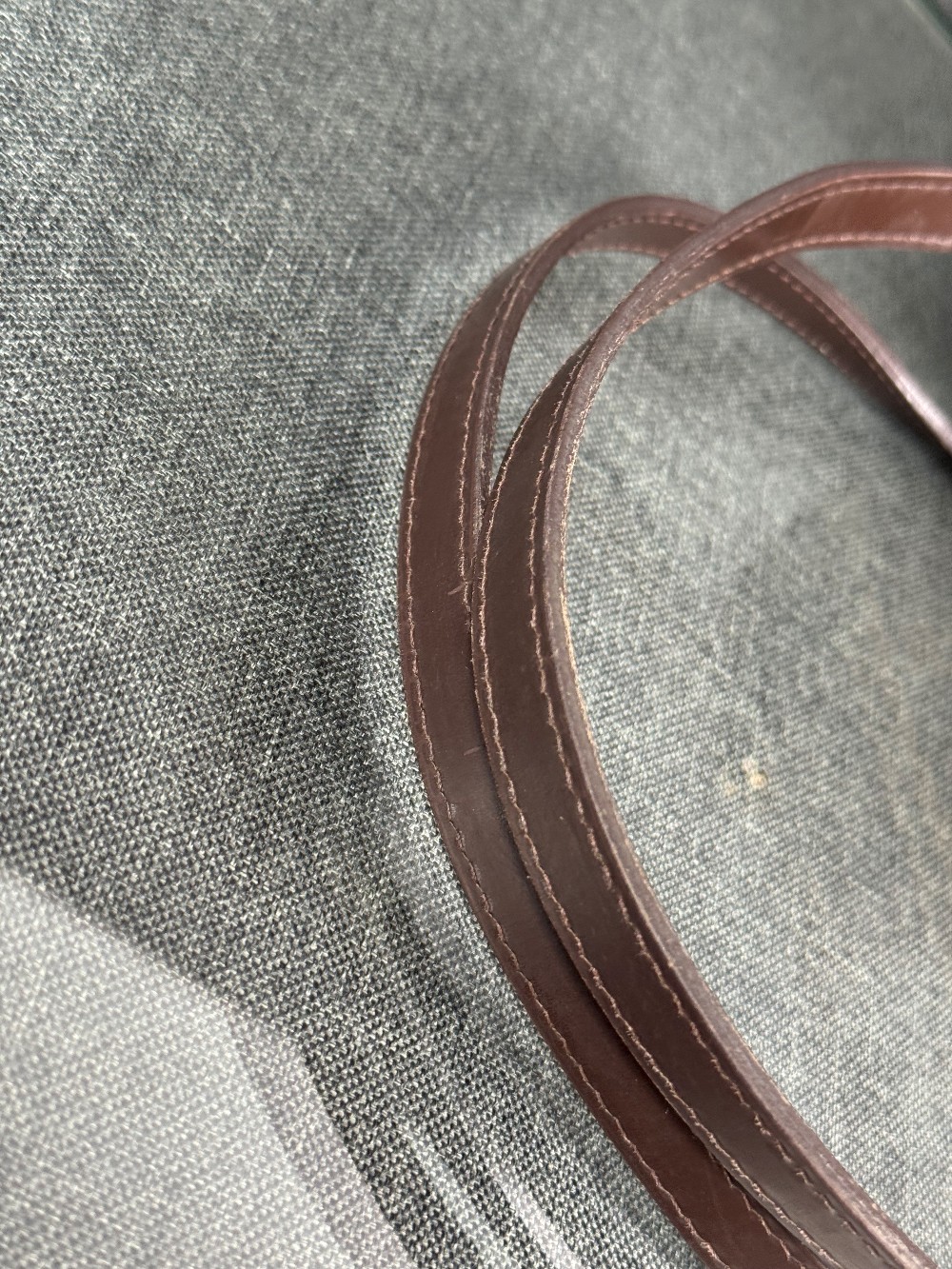 Exterior: corner wear, edge wear, creases, scuffs | Handles/Straps: scuffs, discoloration, minor creases | Interior: discoloration, moderate odor, scuffs | Hardware: scratches, tarnished | This item is used.