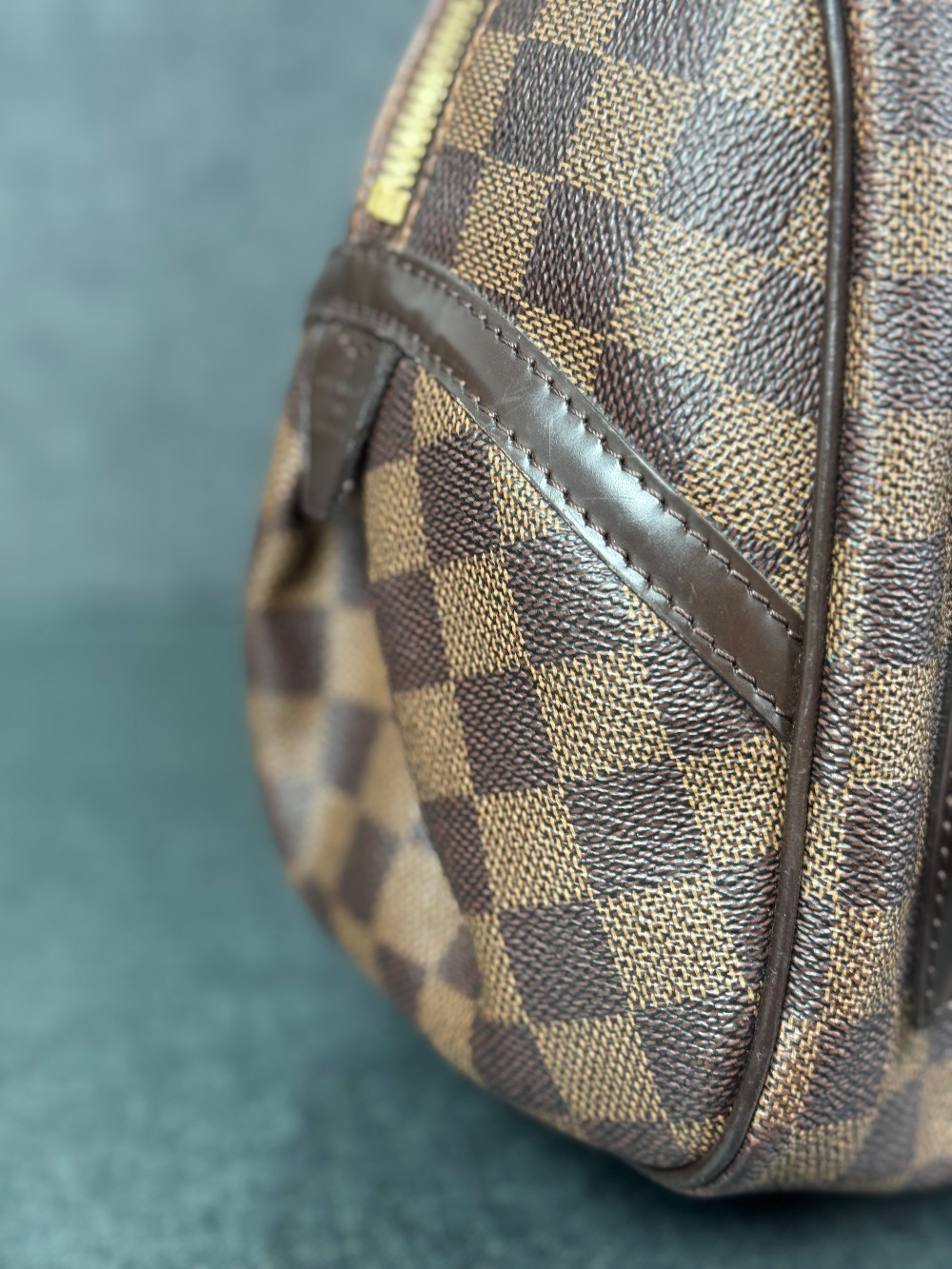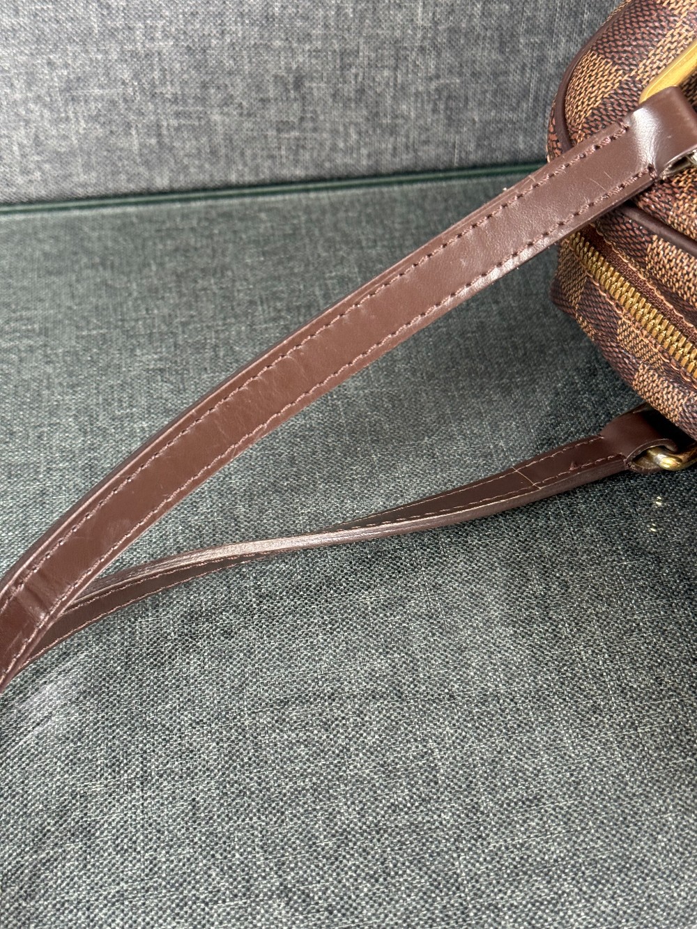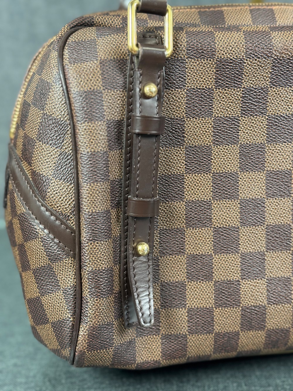 Exterior: corner wear, edge wear, creases, scuffs | Handles/Straps: scuffs, discoloration, minor creases | Interior: discoloration, moderate odor, scuffs | Hardware: scratches, tarnished | This item is used.