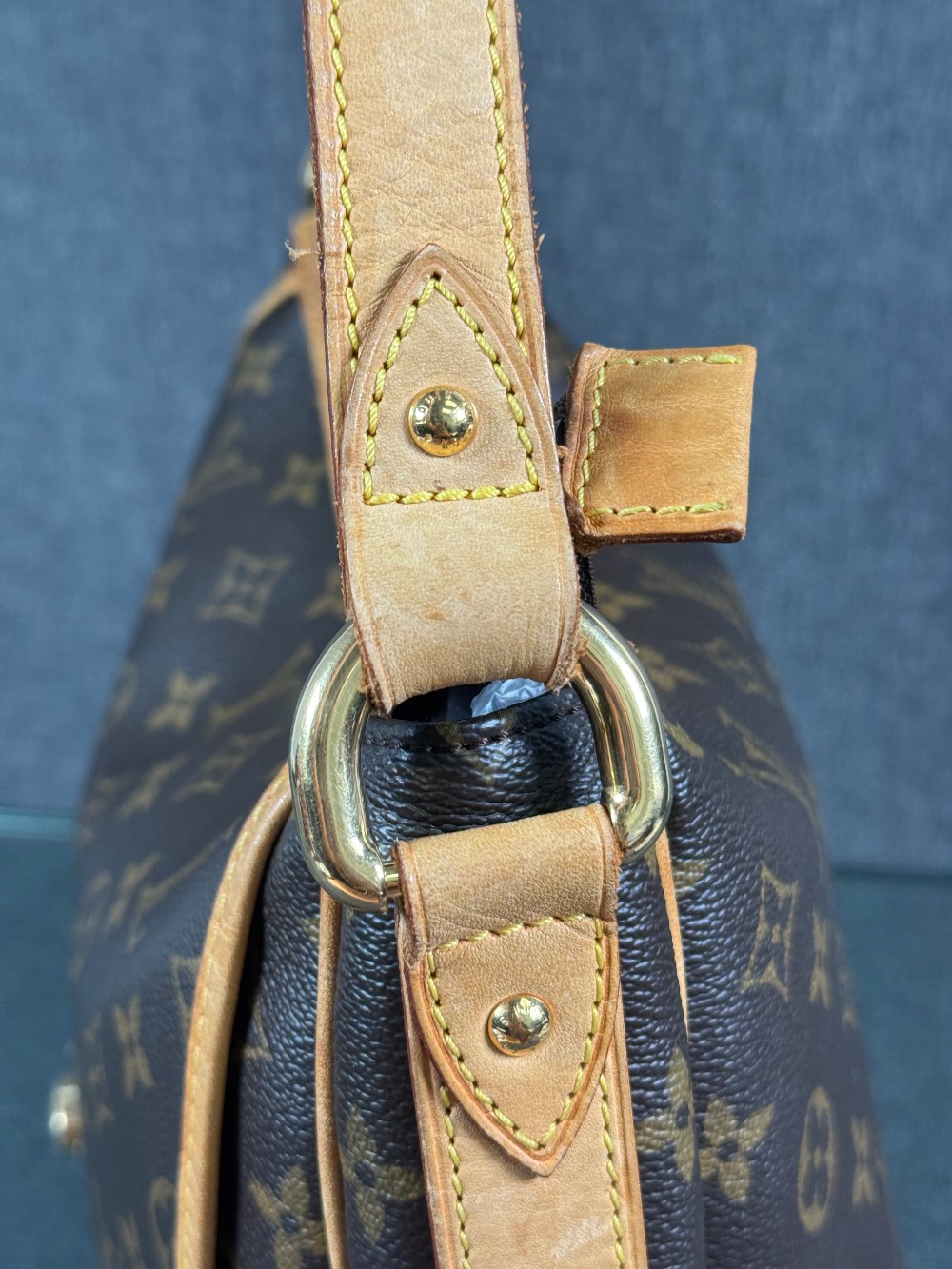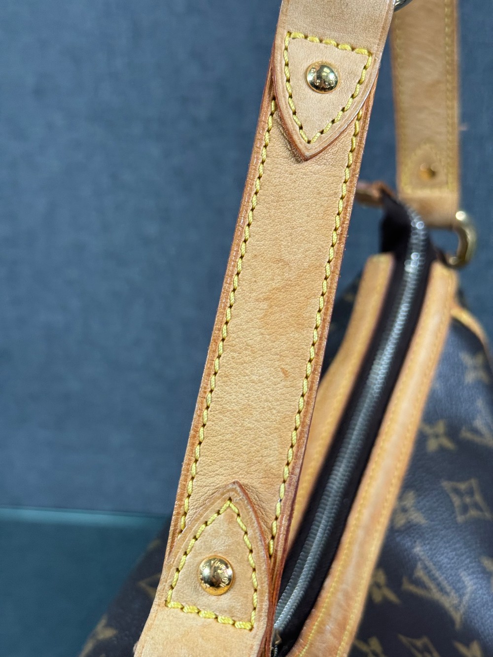 Handle: Edge wear, creases, scuffs, patina of vachetta, liquid marks, marks