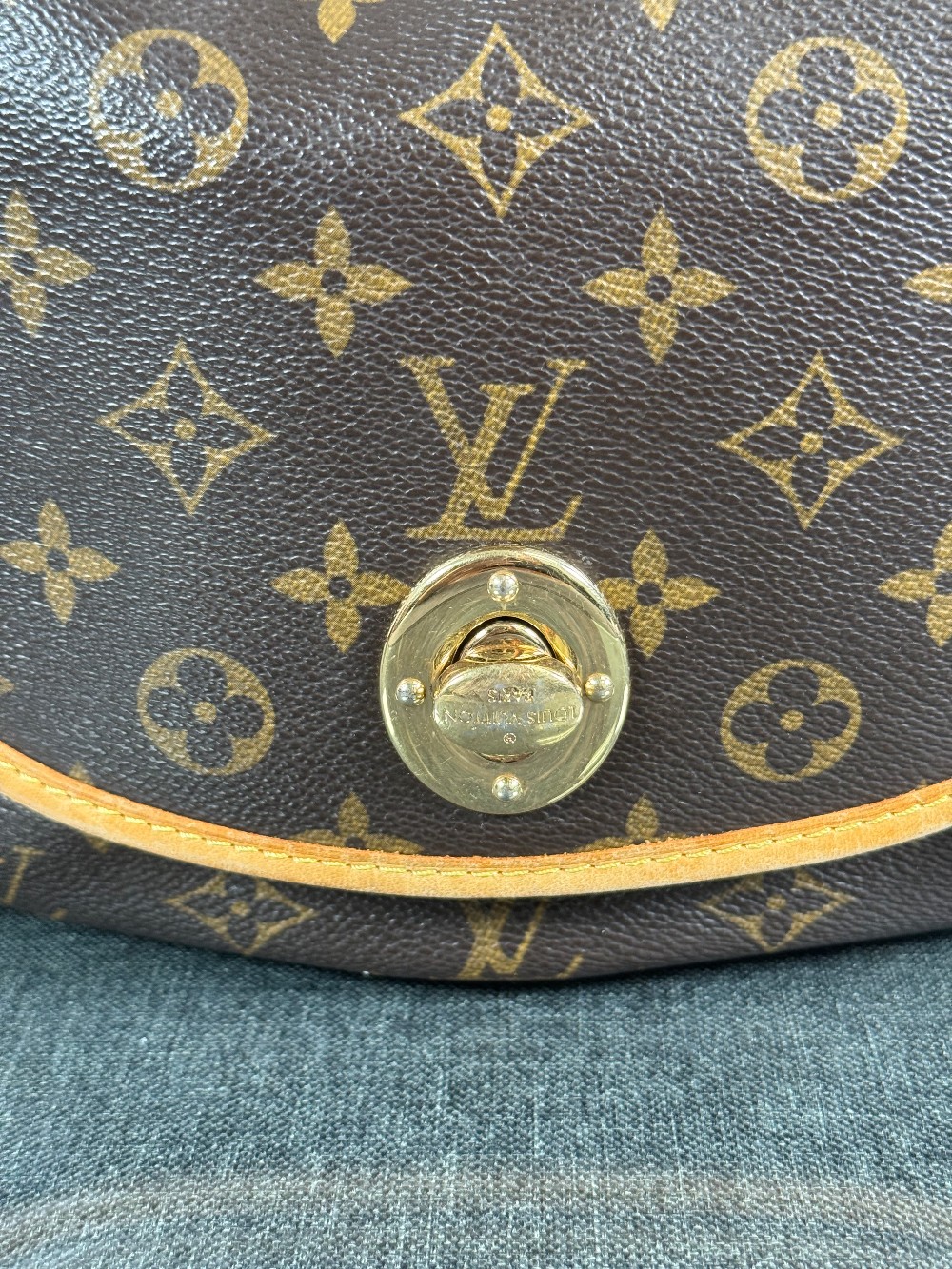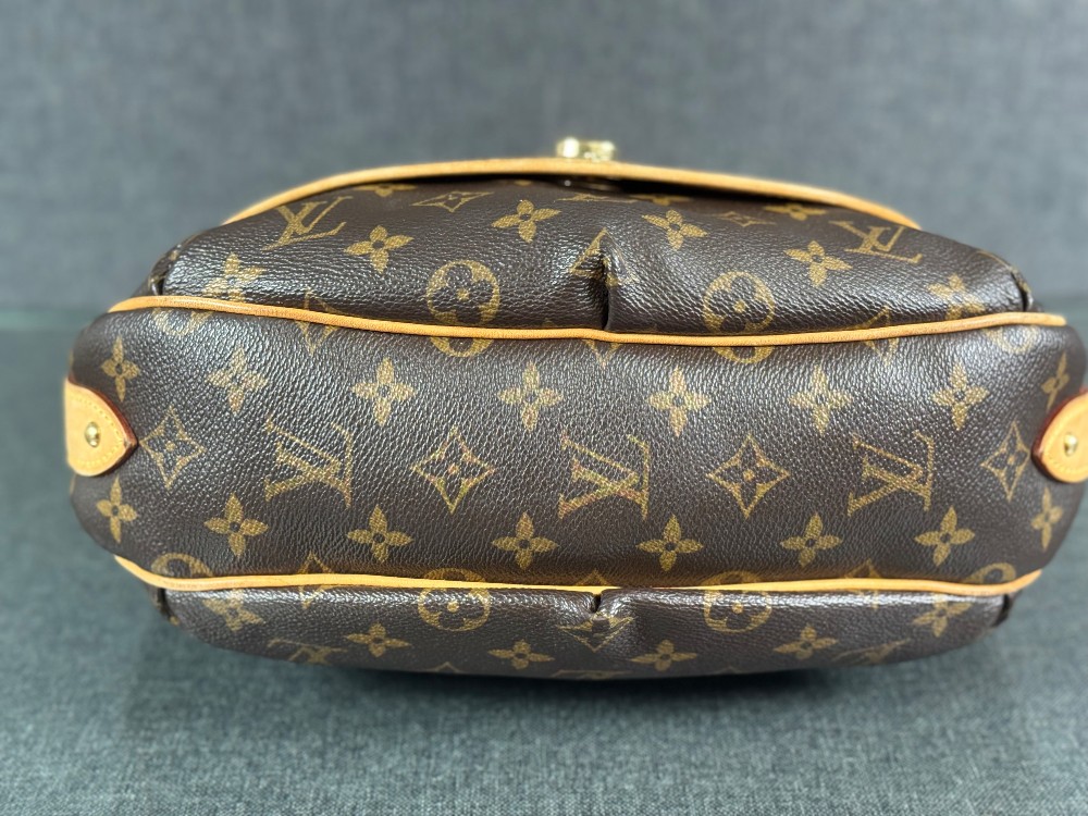 This is an authentic LOUIS VUITTON Monogram Tulum PM. This stylish shoulder bag is finely crafted of classic Louis Vuitton monogram on toile canvas. The bag features a vachetta cowhide leather shoulder strap and trim with a front flap pocket closed by a turn lock, and polished gold tone hardware. The top zipper opens to the main section which is lined in a cocoa brown fabric interior with patch pockets.