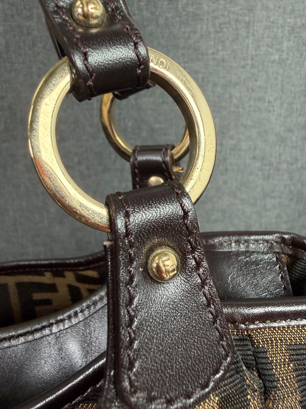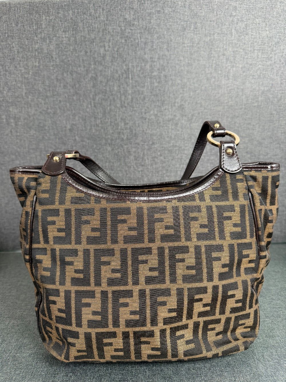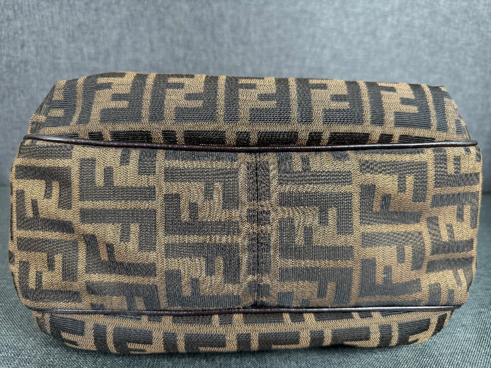 This piece blends iconic FF canvas with leather accents, delivering a stylish and functional carry for everyday use.