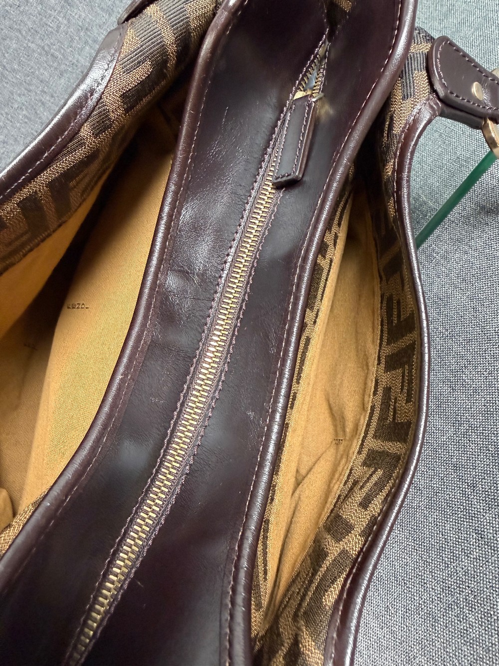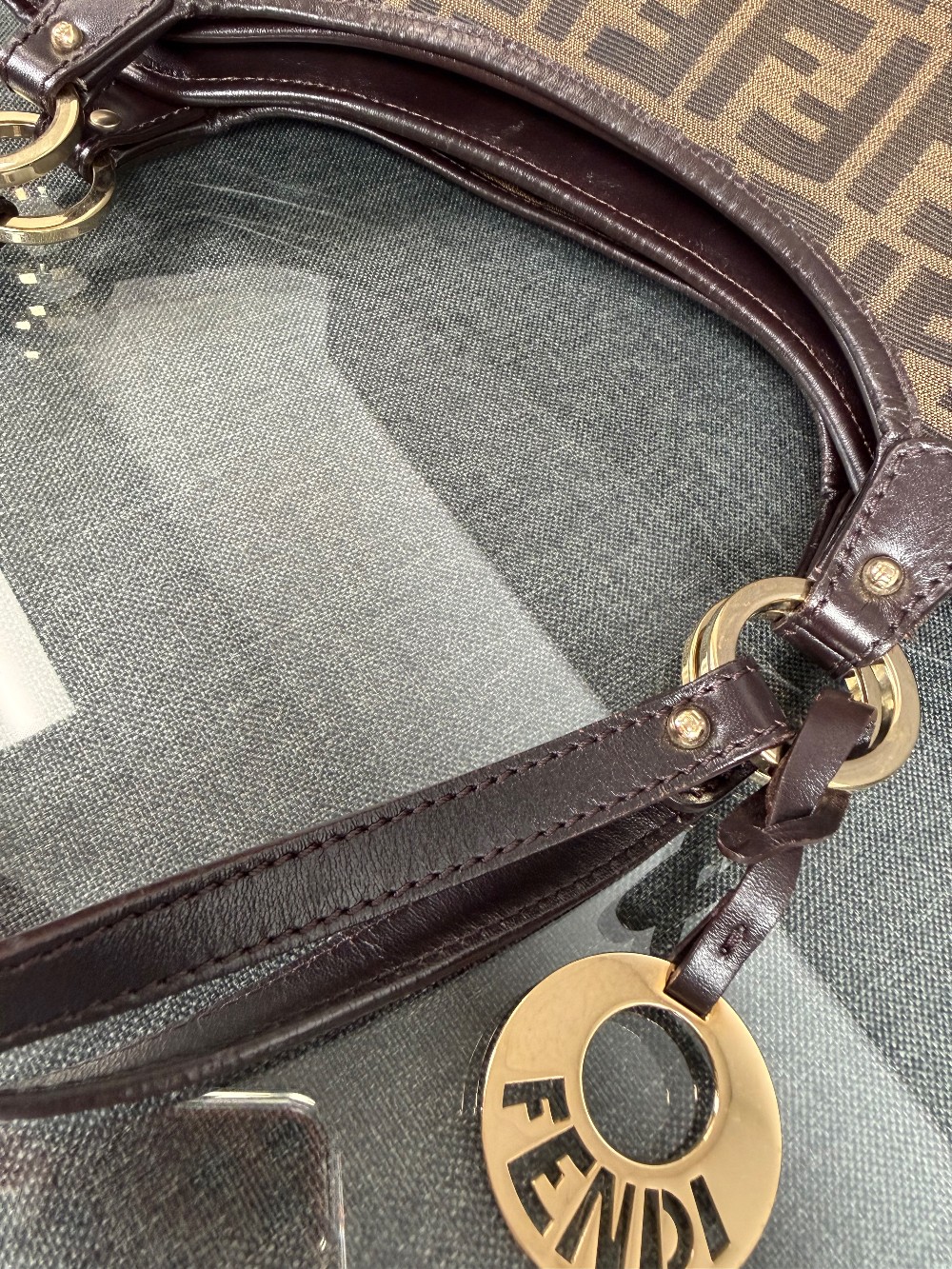 FENDI Classic FF Canvas and Leather Shoulder Bag