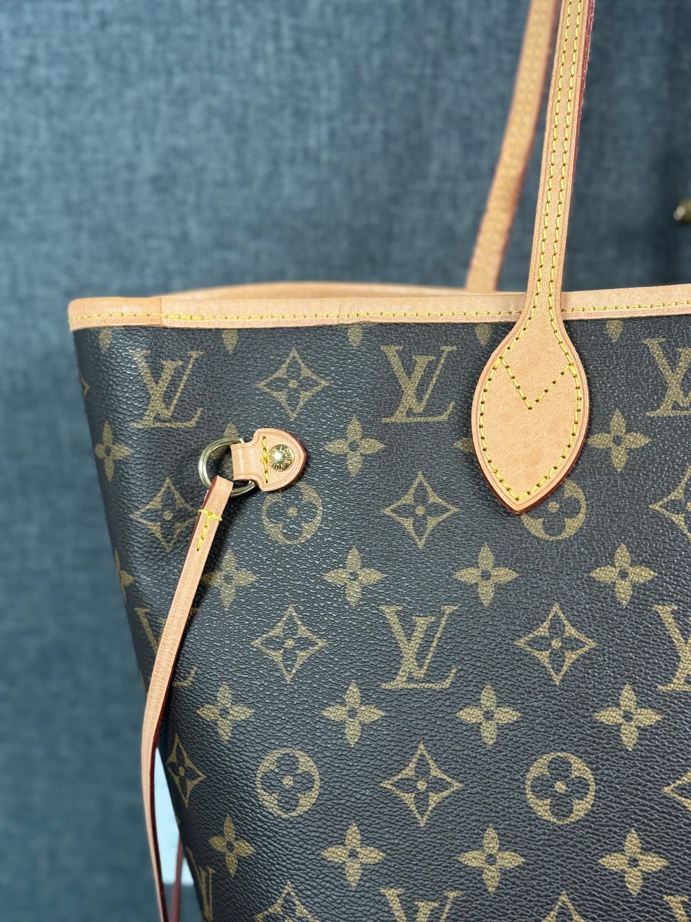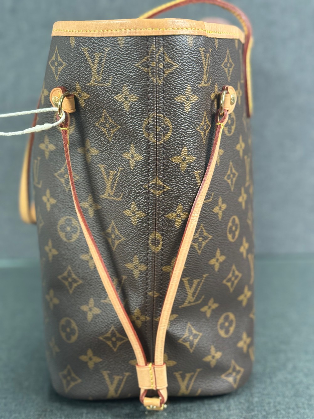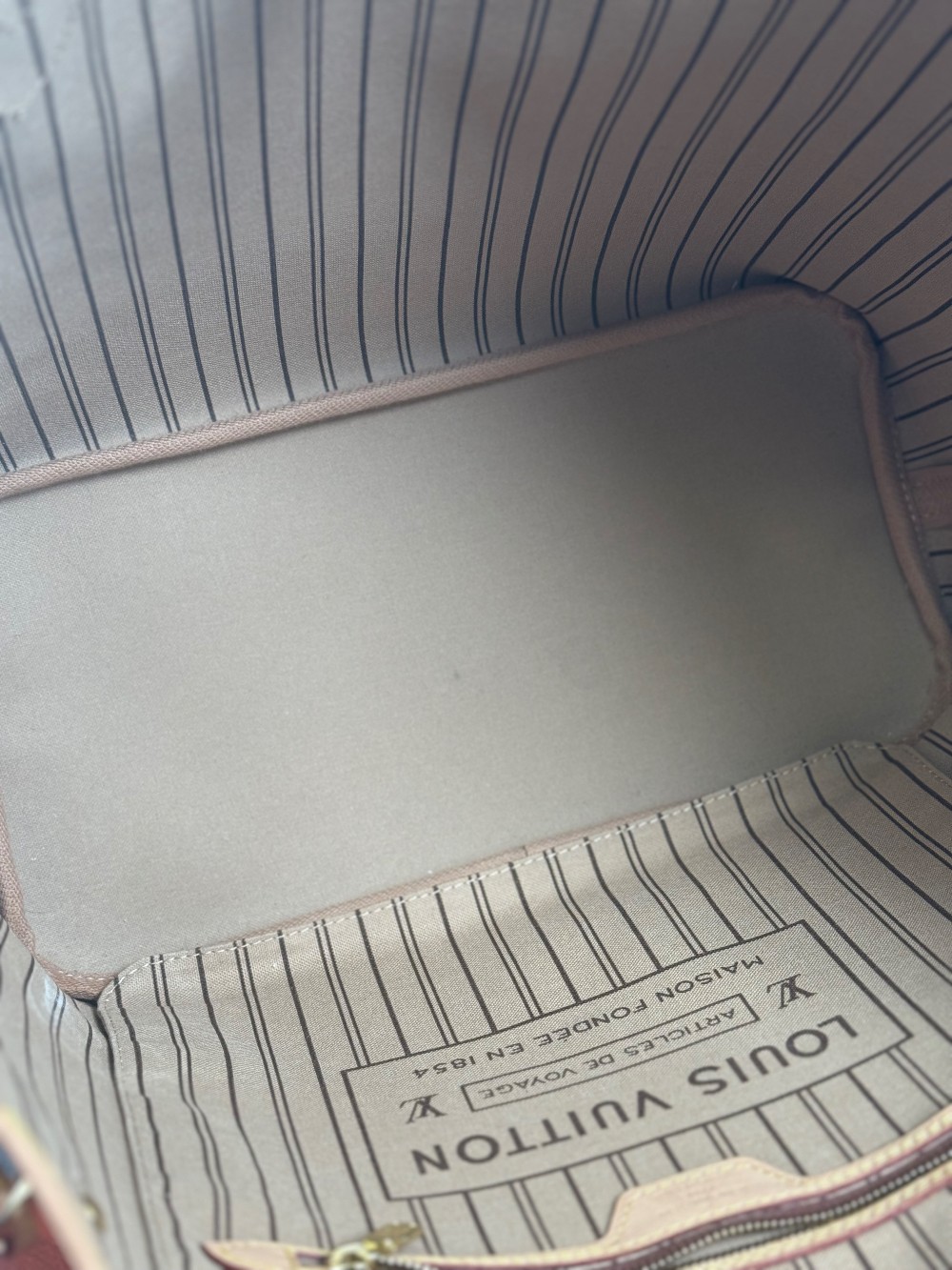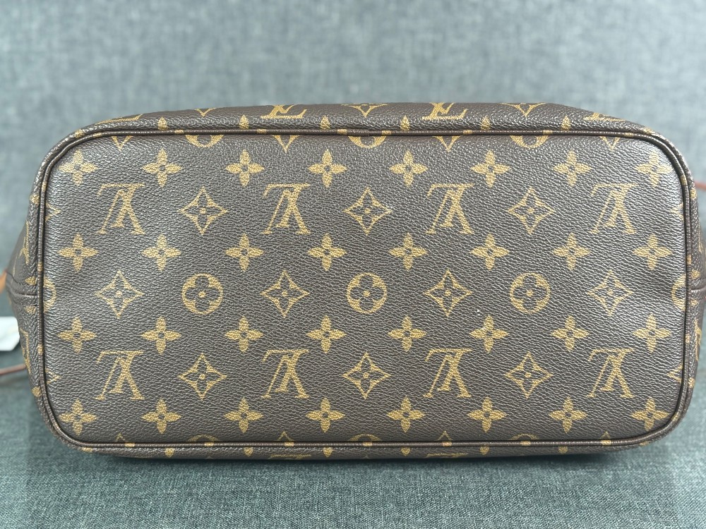 This is an authentic LOUIS VUITTON Monogram Neo Neverfull MM. This stylish tote is crafted of classic Louis Vuitton monogram on coated canvas. It features vachetta cowhide leather trim, shoulder straps and side cinch cords. The top is open to a beige striped fabric interior with a hanging zipper pocket.