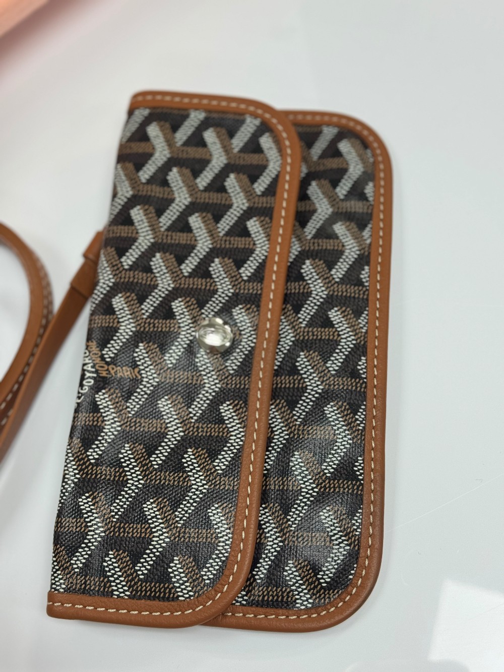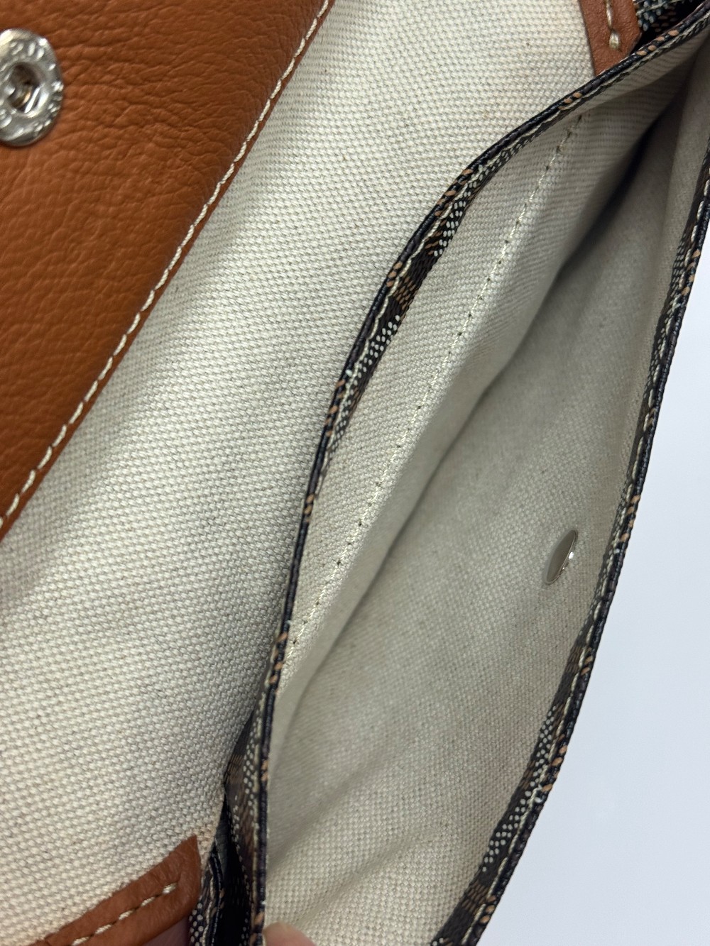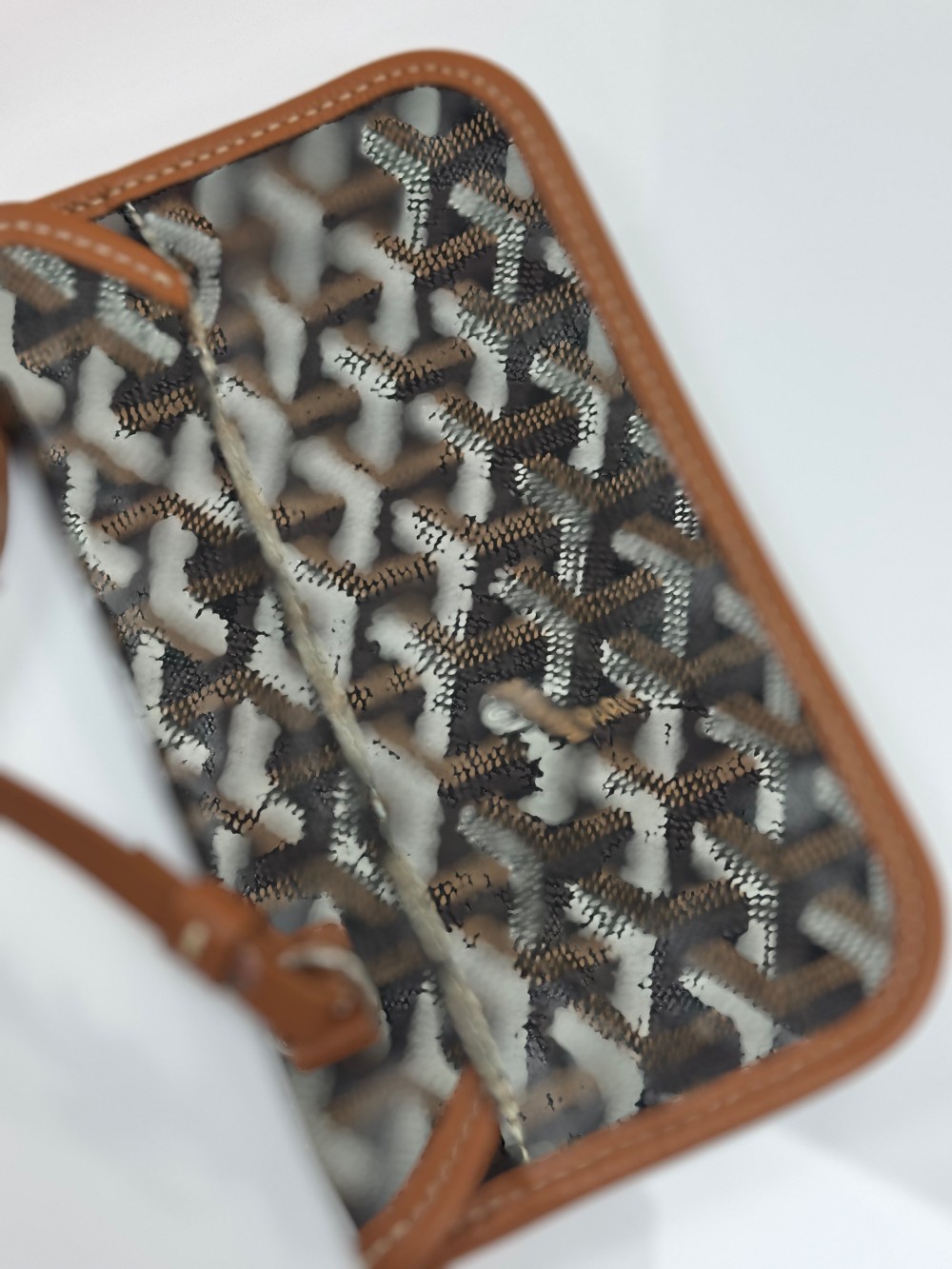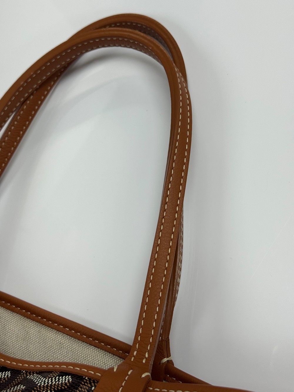 This is an authentic GOYARD Goyardine Isabelle PM in Black and Gold. This stylish tote is crafted of traditional Goyard goyardine chevron on black canvas. The bag has a brown leather trim along the top with matching leather handles. The top is open to a beige canvas interior with a matching removable pouch.