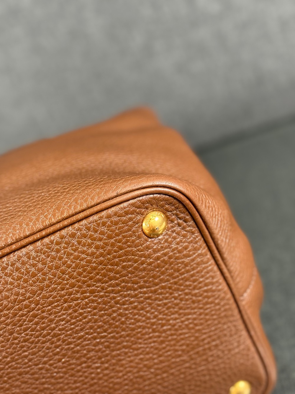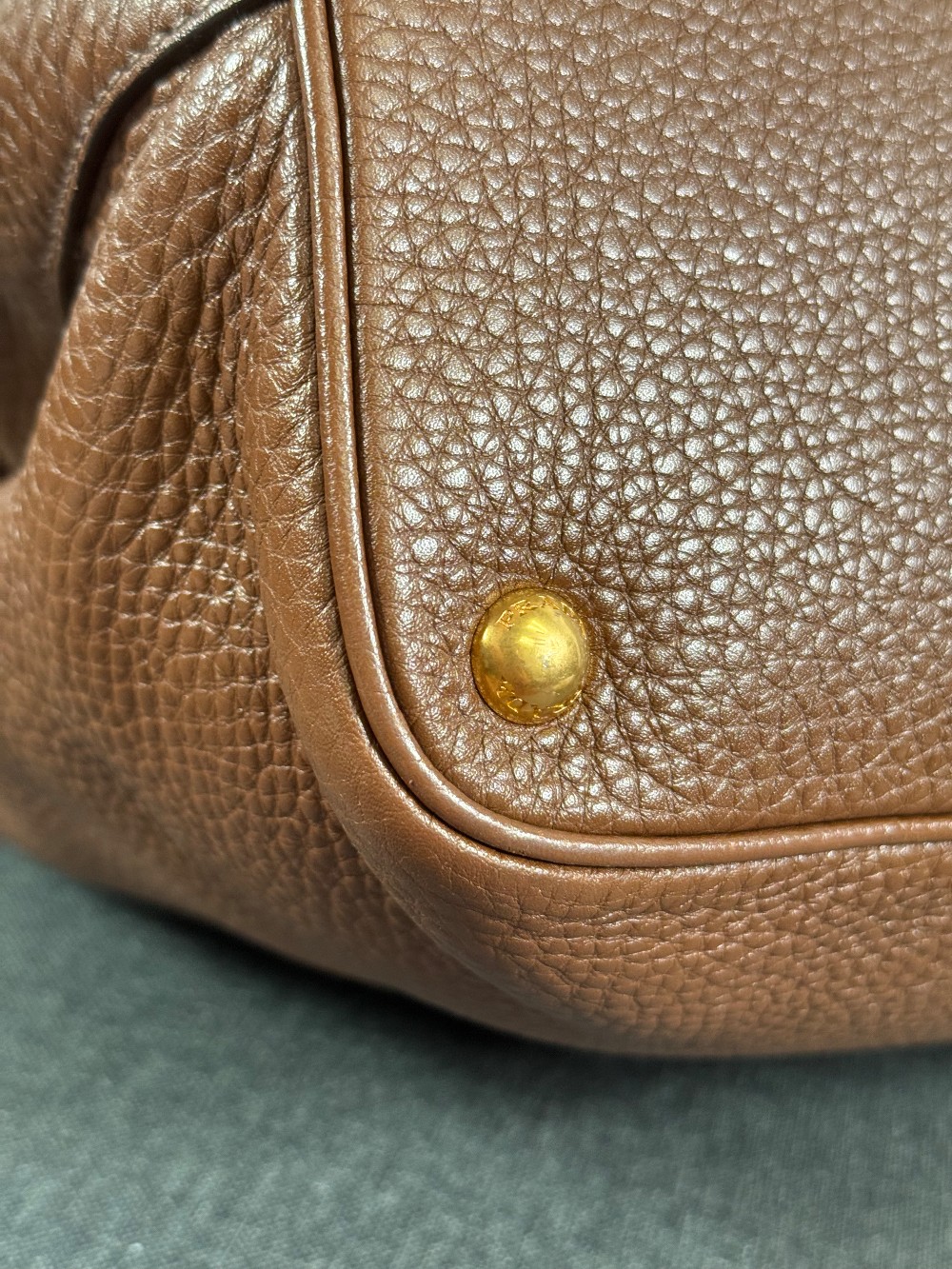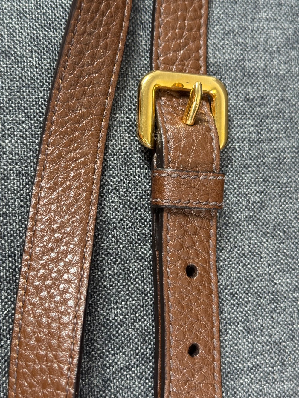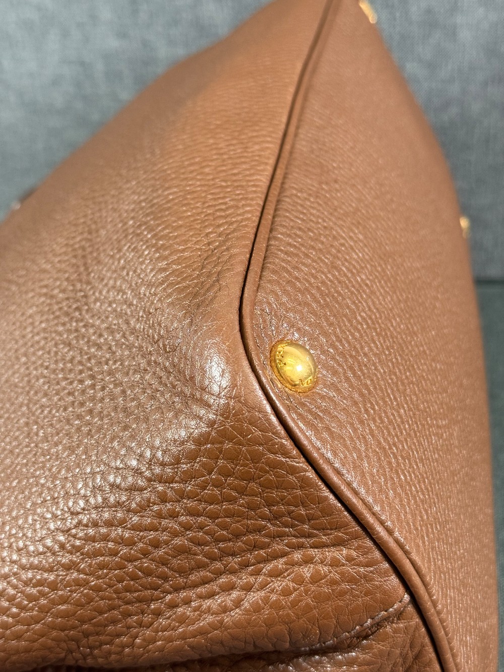 This is an authentic PRADA Vitello Daino Zip Tote in Cannella. This is a luxuriously textured calfskin leather tote in brown. This shoulder bag features rolled leather handles with polished gold links and includes an optional adjustable leather shoulder strap. The top opens to a partitioned brown Prada monogram jacquard fabric interior with a central zipper compartment, zipper and patch pockets.