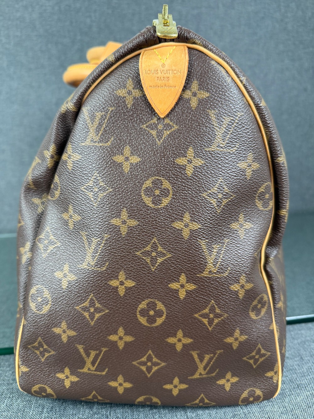Handle: Scuffs, patina of vachetta, liquid marks