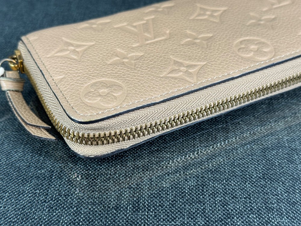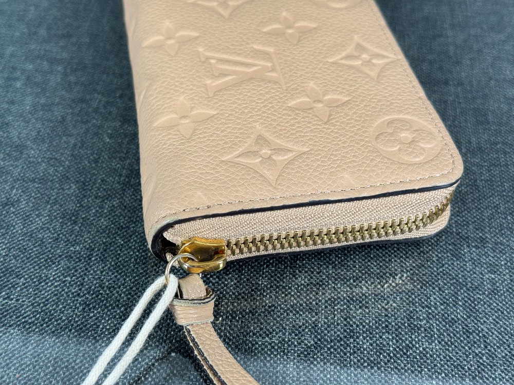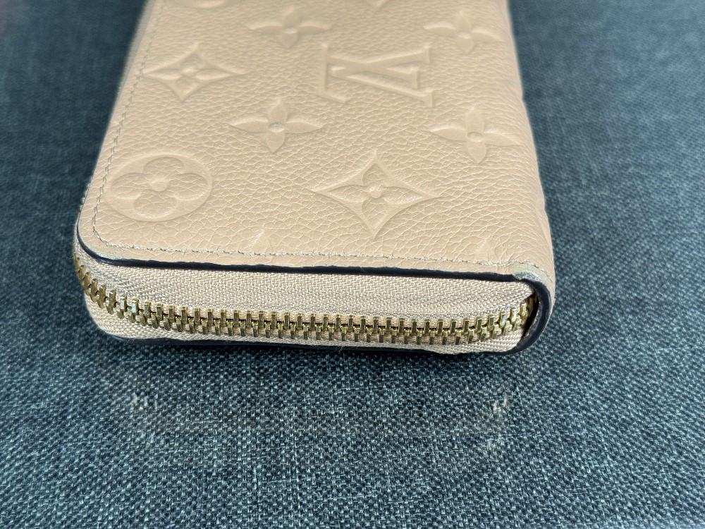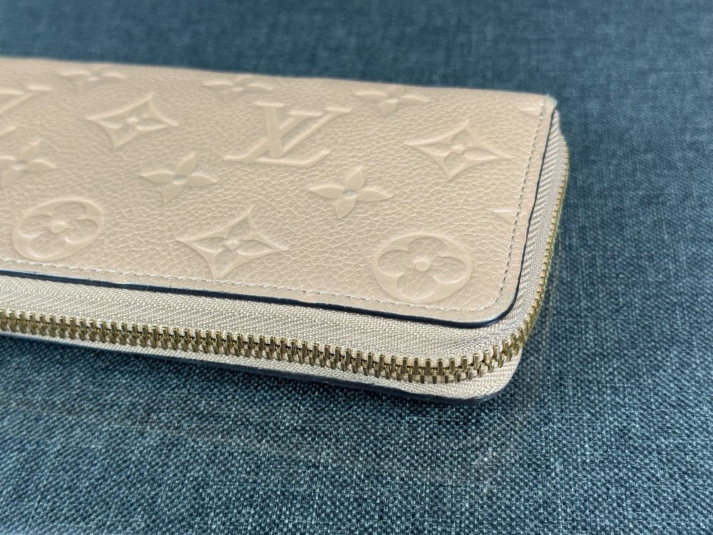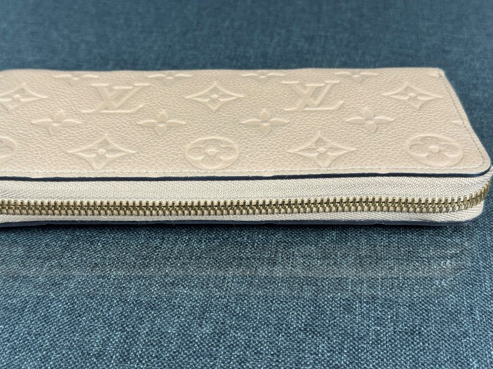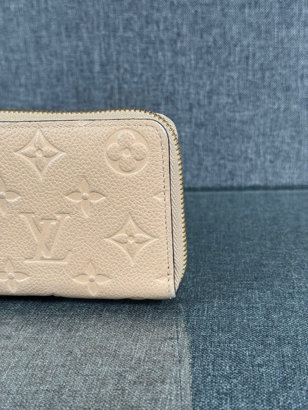 This is an authentic LOUIS VUITTON Empreinte Zippy Wallet in Cream. This chic clutch wallet is crafted of fine Louis Vuitton monogram embossed off white leather. The wallet features a wrap-around polished gold zipper that opens to a leather interior lined with card slots and patch pockets and a partition zippered pocket.