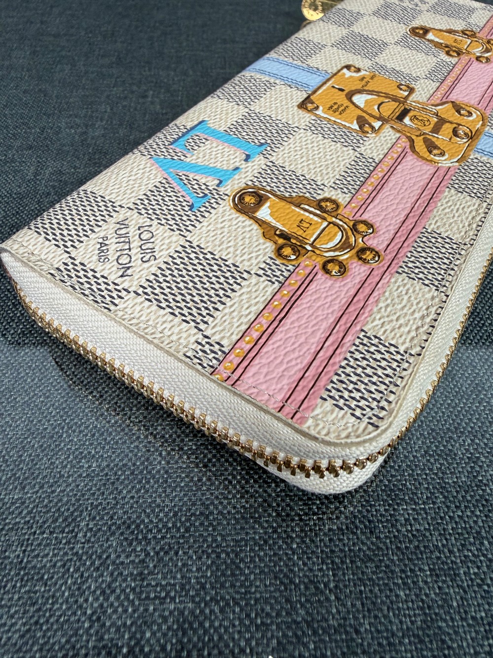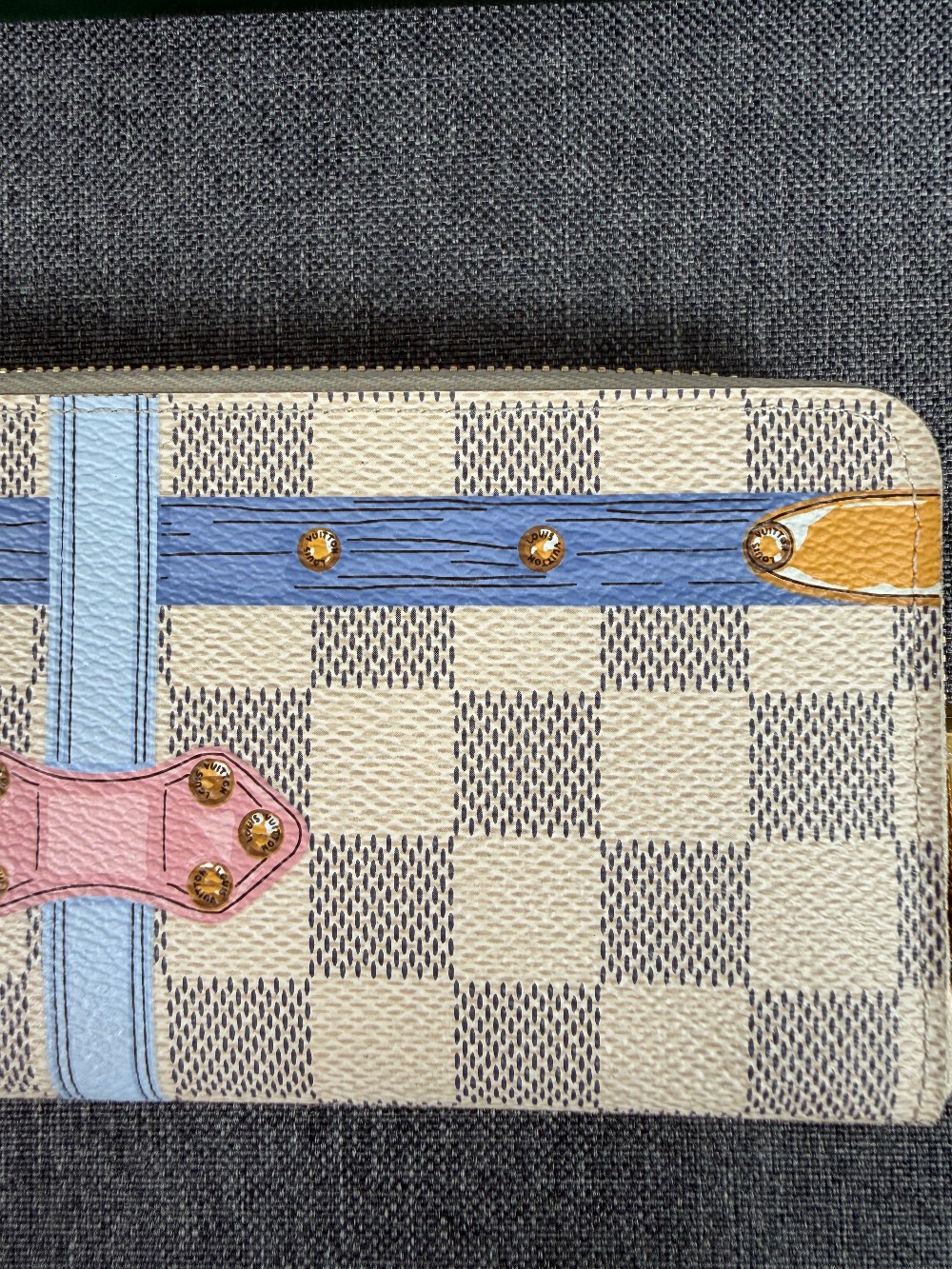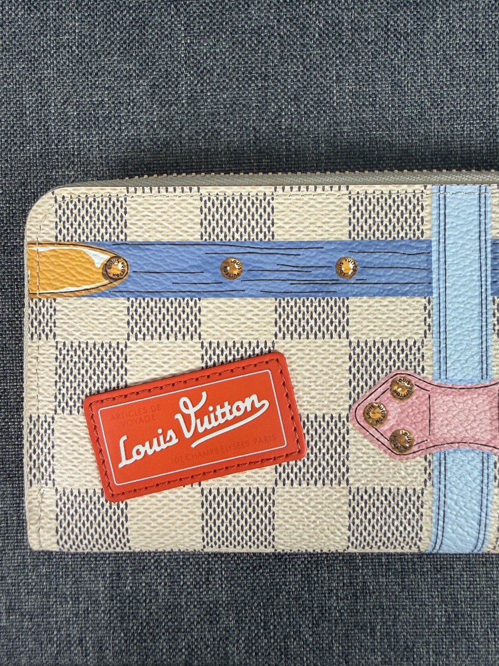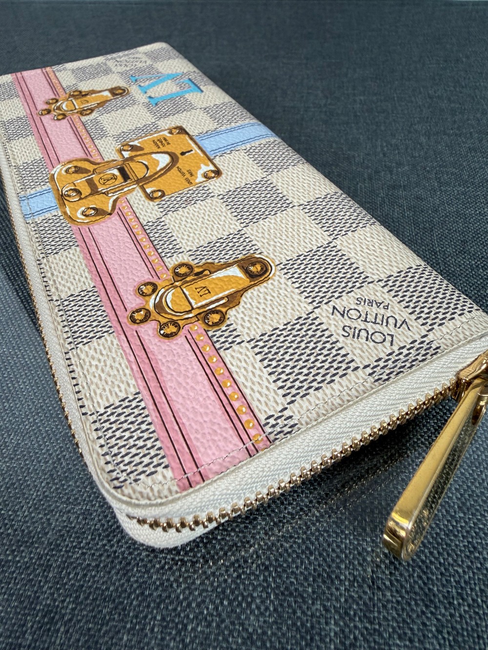 This is an authentic Louis Vuitton Limited Edition Summer Trunks Zippy or Clemence Long Wallet. This specific model was part of a 2018 collection.