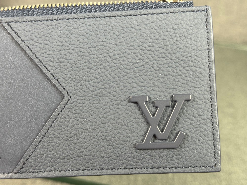 This is an authentic LOUIS VUITTON Calfskin Aerogram Coin Card Holder in Navy Blue. This chic card holder is finely crafted of Louis Vuitton navy blue cowhide leather. The case features same-color matte LV Initials, card slots, and a patch pocket. The polished silver top zipper opens the case to a matching leather interior.